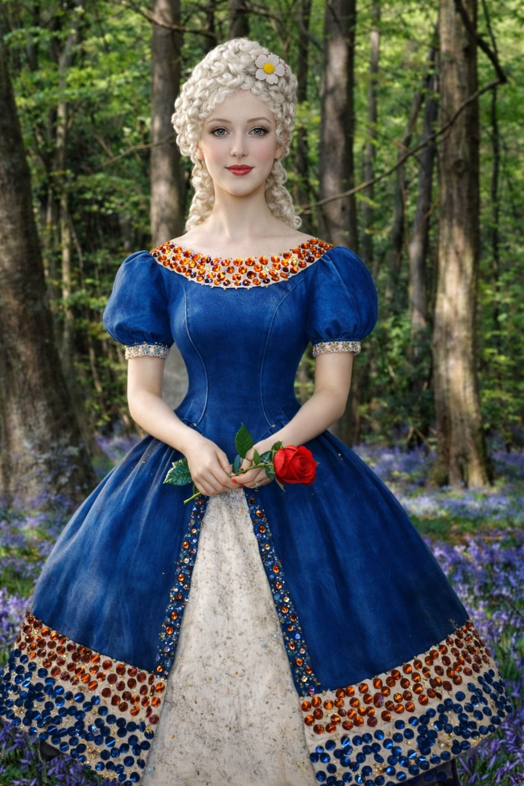 Красавица с прекрасными голубыми глазами, бархатными ресницами и румяными щёчками, сразила сияющее сердце озёрного дива. Прелестное личико и губы-бантики очаровали владыку озера. Она казалась сотканной из солнца и воды, воздуха и удивительных роз, овеяна солнечным светом, омыта проливным дождём.