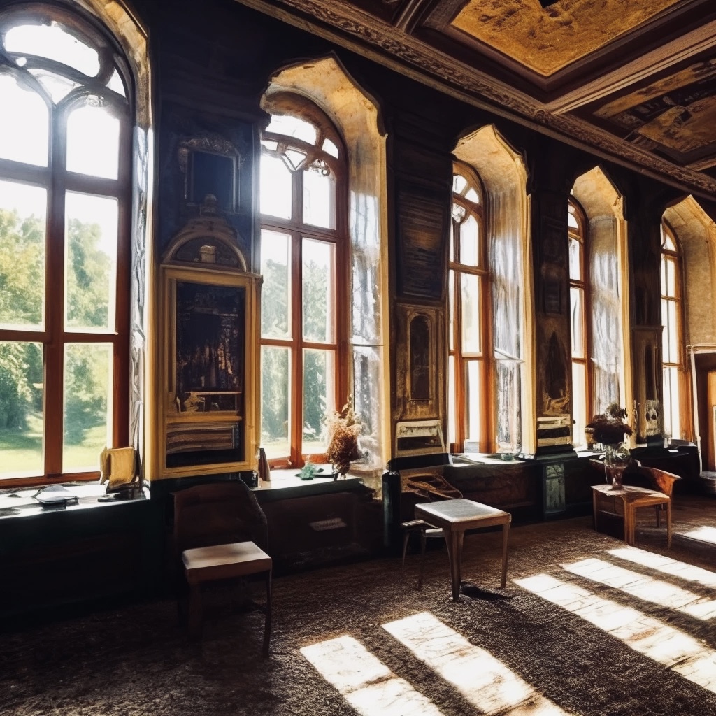 А посмотреть в библиотеке было на что. Мне всегда казалось, что здесь обитает идеальная осень. Грандиозная по размерам зала уходила высоко в купол одной из широких башен. Её барабан — сплошь стёкла — обильно рассеивали вокруг мягкий утренний свет. Щедрая позолотой отделка ловила лучи восходящего солнца, расцвечивая отблесками богато убранное пространство. Книгохранилище пылало каймой благородного металла по линиям картин и портретов, по ободам подсвечников и светильников. Разноцветный бархат книжных корешков, будто сменивших цвет листьев, плотно лепился друг к другу, создавая упорядоченную какофонию оттенков вдоль ровного ряда полок. Шкафы, все равно что неправильные деревья с неестественно ровными — только прямыми по вертикали и горизонтали — ветками, плотно обхватывали свои некогда кроны.