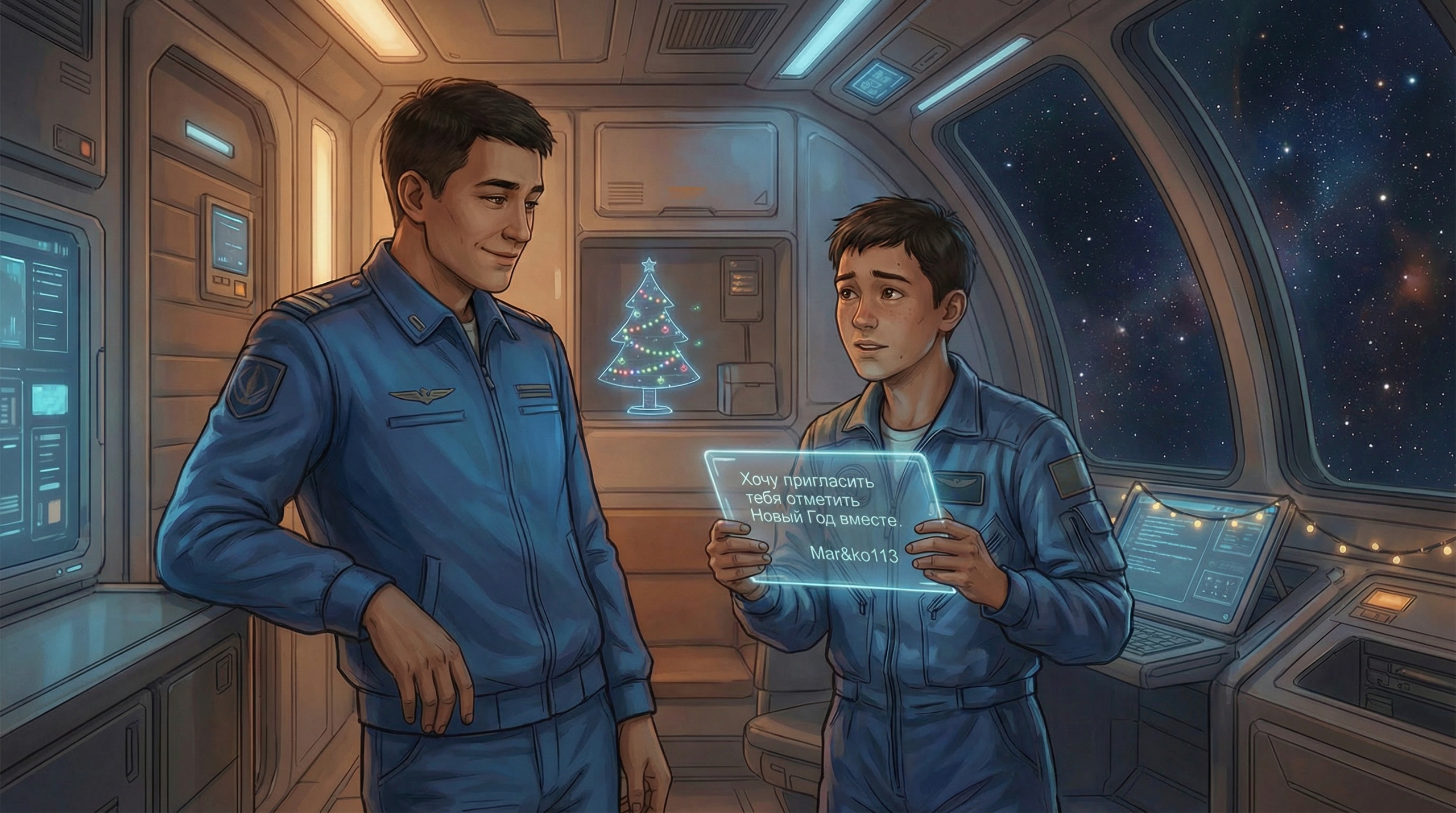 — «Хочу пригласить тебя отметить Новый Год вместе. Mar&ko113», — вновь громко зачитал сообщение и закатил глаза. — Проклятые астероиды, а это ещё что такое? Мар-энд-ко-один-один-три?!