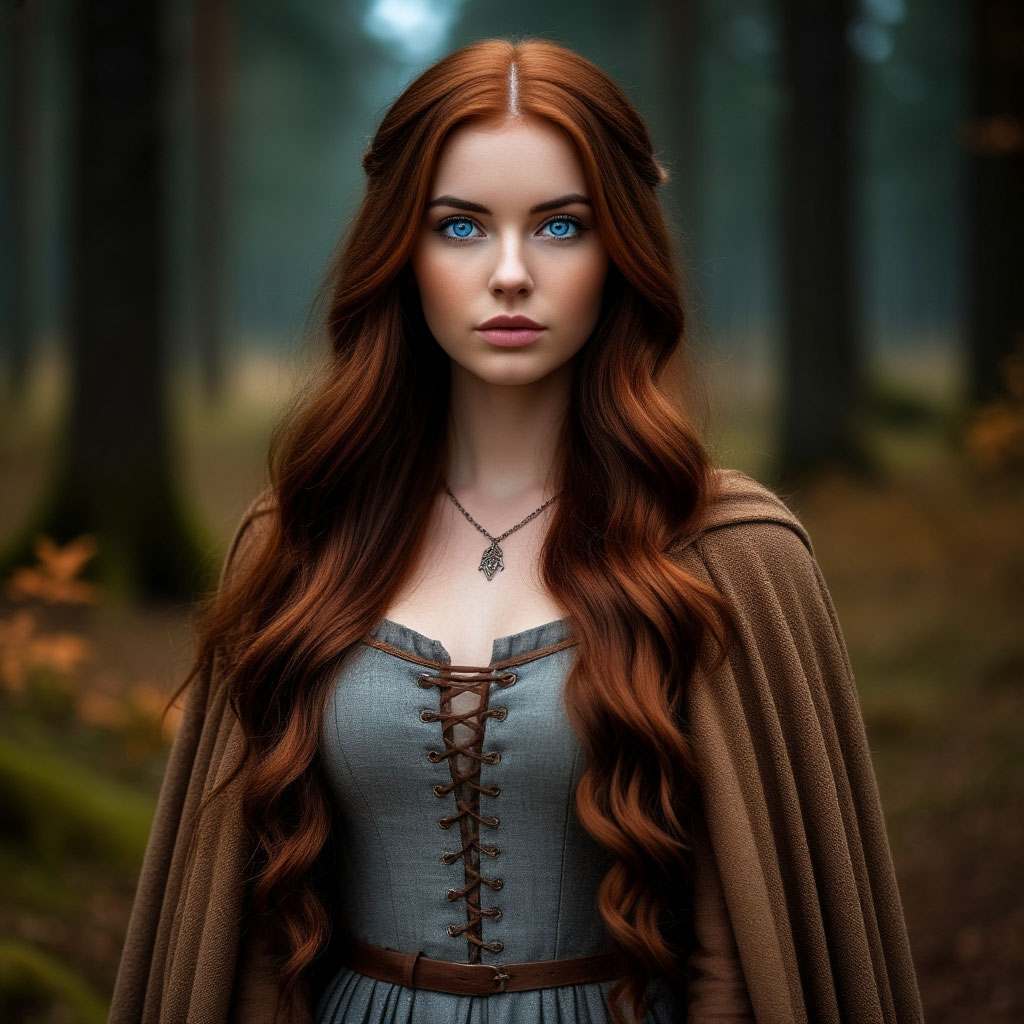 Темно-медные длинные волосы обрамляли ее довольно милое лицо с огромными глазами, тонким небольшим носиком и пухлыми ярко-розовыми, как лесная малина, губами.