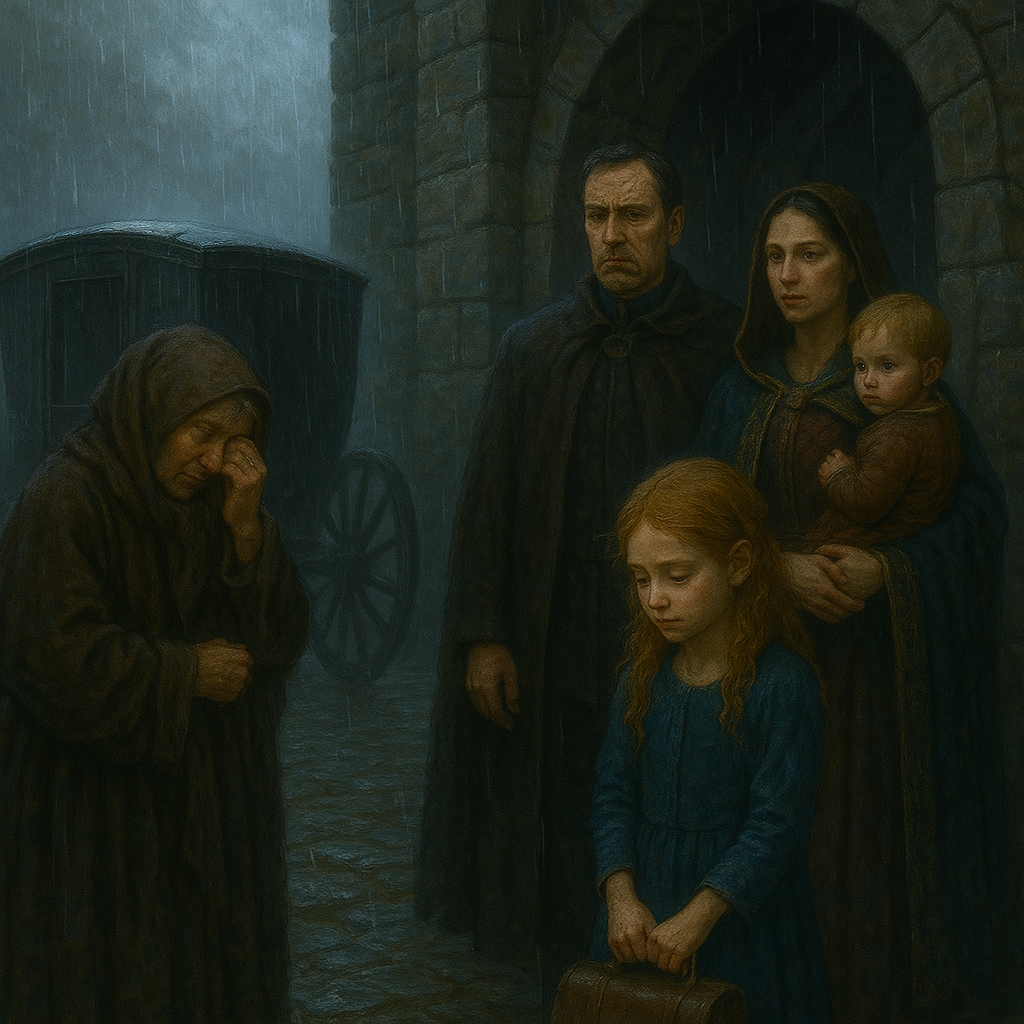 Утро моего отъезда - серое, как и все предыдущие. Правда, сегодня, увы, к мрачности добавился ещё и противный мелкий дождь. Я стояла у ворот, где меня ждала старая, скрипучая карета, крепко сжимая в руках сумку с вещами. Книга была надёжно спрятана на самом дне.