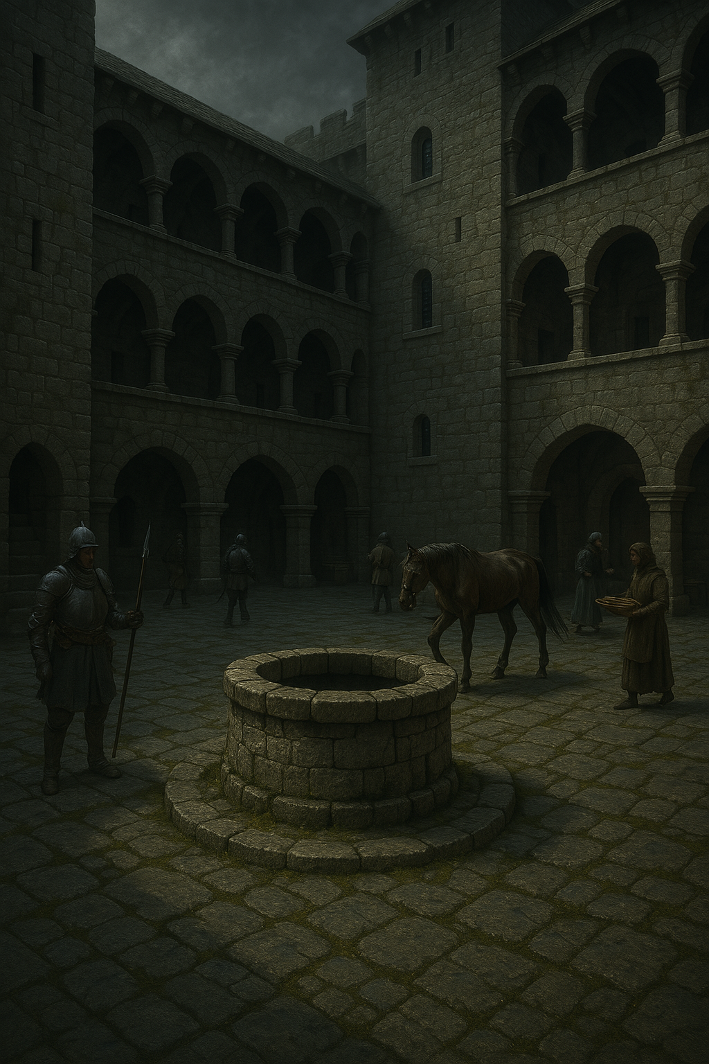 Вечная влажность превратила камни во дворе в скользкие, опасные площадки, покрытые тонким слоем мха. Колодец в центре двора, с потрескавшимся от старости ободом, служил главным источником воды для всего замка, и вода в нём всегда была ледяной, с металлическим привкусом.