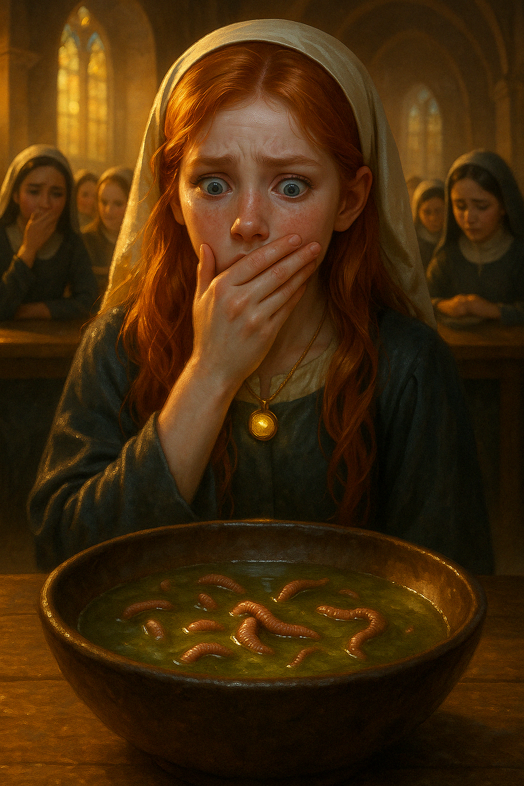 Трапезная гудела, как улей. Воспитанницы рассаживались за длинными столами, монахини занимали места на возвышении. Я привычно направилась к тому краю, где обычно сидела в одиночестве, но Розалинда удержала меня за рукав платья.