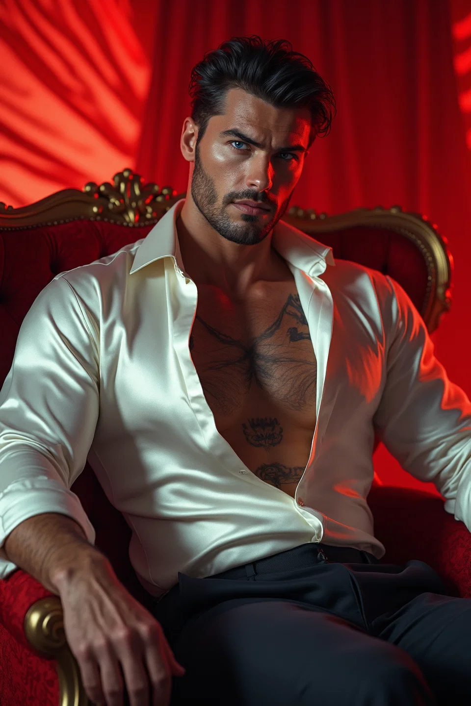 Мужчина был статет, даже в таком положении. С широкими мощными плечами. Мужественное лицо, с густыми бровями и темными волосами. Частые морщины прорезали лоб и переносицу, хотя вряд ли ему было больше тридцати пяти.