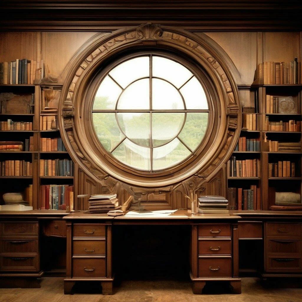 - Вот тут учётная книга, вот здесь каталог книг… - Его морщинистые руки показывали на полки над рабочим столом. В подсобке оказался маленький рабочий кабинет, главное место в котором занимал письменный стол с ящичками, стоящий боком к круглому окну в старой деревянной раме. Я, как не старалась, в силу своего роста никак не могла разглядеть, что там, за стеклом – мне казалось, что я вижу верхушки деревьев, и как ветер шевелит их ветвями.