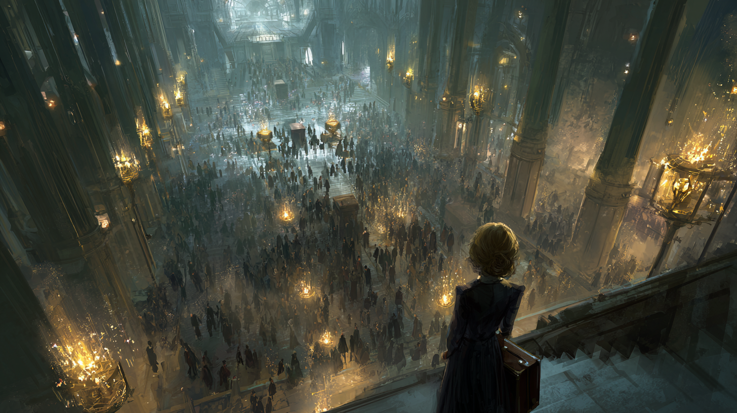 Красота и масштаб этого места давили. Высокие колонны уходили в каменный свод. Магические лампы сияли холодным золотом.
