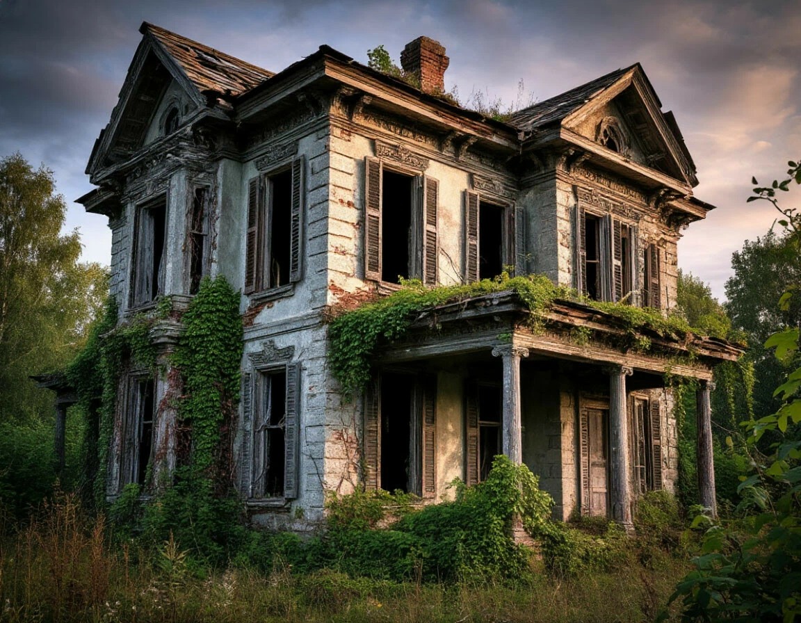 Передо мной не лачуга, как я ожидала, а… руины былого величия. Сквозь буйные заросли колючей ежевики и бурьяна в рост человека проглядывают очертания некогда прекрасного двухэтажного дома с резными ставнями, теперь покосившимися и почерневшими от времени. Крыша кое-где провалилась, а по стенам ползёт плющ, цепкий и безразличный. Воздух густой, пахнет сырой землёй, прелыми листьями и тишиной. Гробовой тишиной.