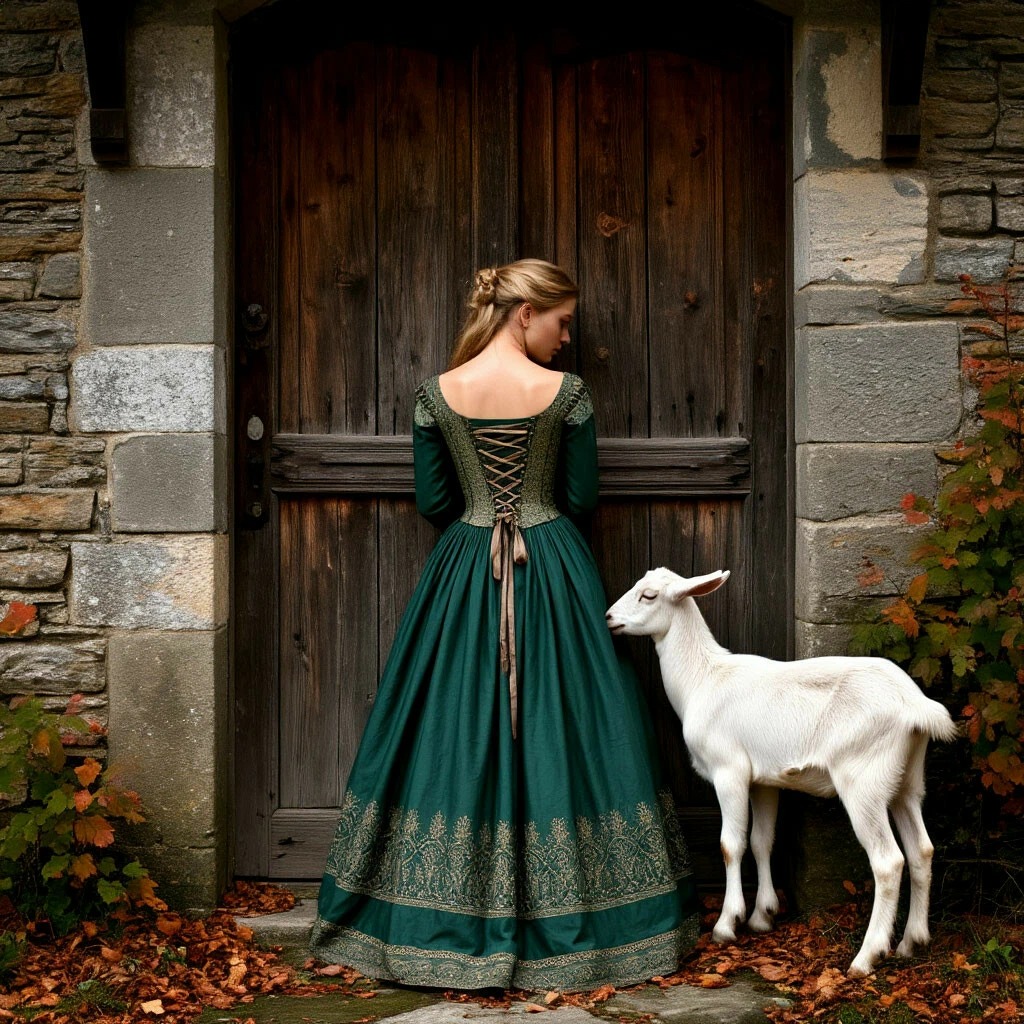 Медленно, плавно, чтобы не спугнуть, я отступаю к буфету. Стекло мутное, но за ним угадываются очертания посуды. Дверца со скрипом поддаётся, и я нахожу простую глиняную миску, толстостенную и прочную. Козочка наблюдает за мной, коротко и тревожно блея, переступая с ноги на ногу.