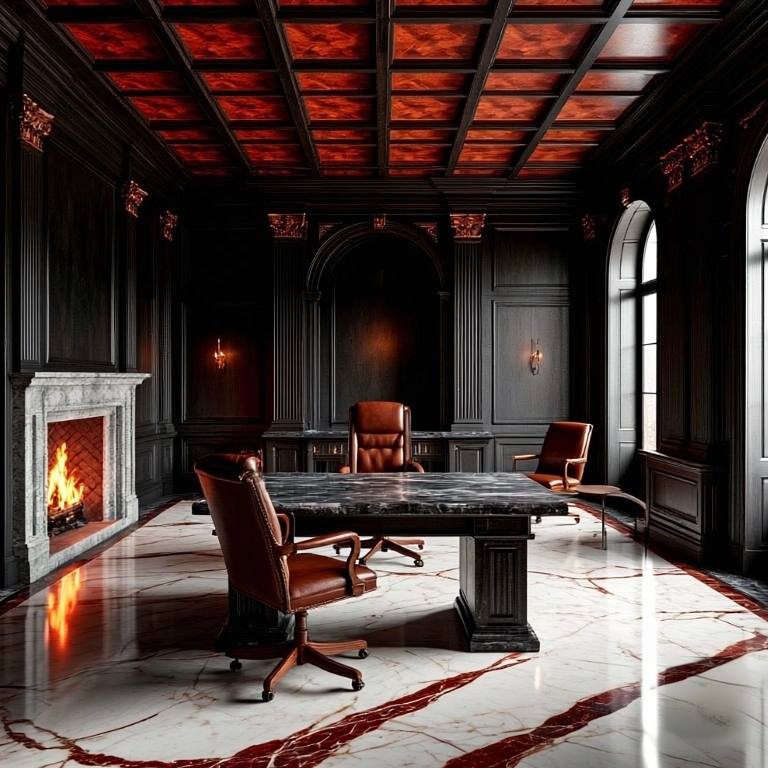 Дарххарион Артансейр – безжалостный правитель дома Теней, – одного из могущественных демонических кланов, расположился в глубине своего кабинета за рабочим столом. Стены были обрамлены тонким слоем тёмного полотна тутового шёлка. Потолочные взводы украшало угольного цвета дерево – единственное место, что нашлось для этого природного материала. Тёплого, потому и нелюбимого демоном. На молочном, пронизанным рыжими и графитовыми прожилками мраморе играли отблески пламени. Огонь ласкал стенки мощённого ониксом камина.