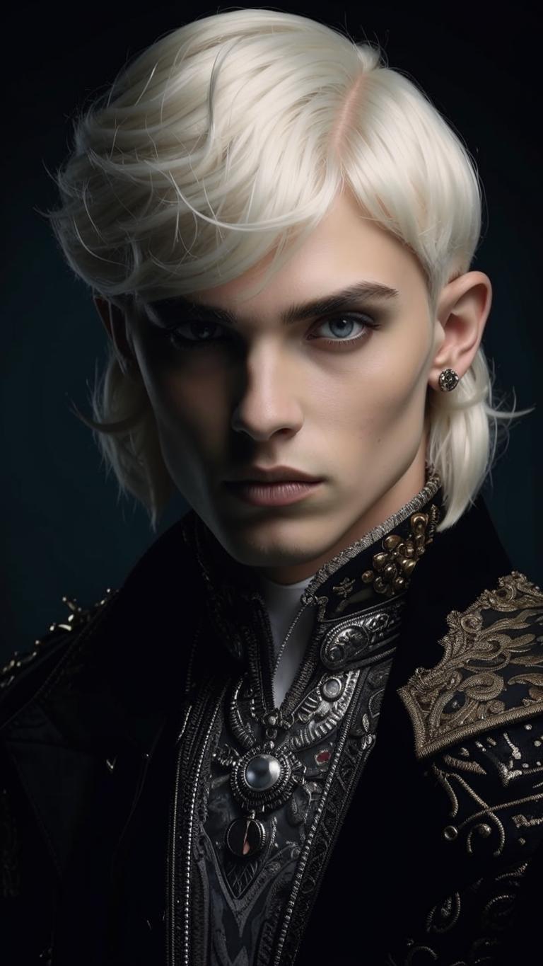 Платиновые локоны ласкали острые скулы. Их концы не были связаны шнурком и едва доходили мужчине до нижней челюсти. Тонкая вязь молочного орнамента опоясывала высокий лоб. Со стороны могло показаться, что это притягательное в своей простоте лицо, без единой морщины и следов растительности, принадлежит юнцу, но это не так. Стоило только заглянуть в беспощадные, прозрачные, почти бесцветные глаза цвета тумана, чтобы понять – перед вами смерть в её чистом воплощении. Смерть не может быть юной.