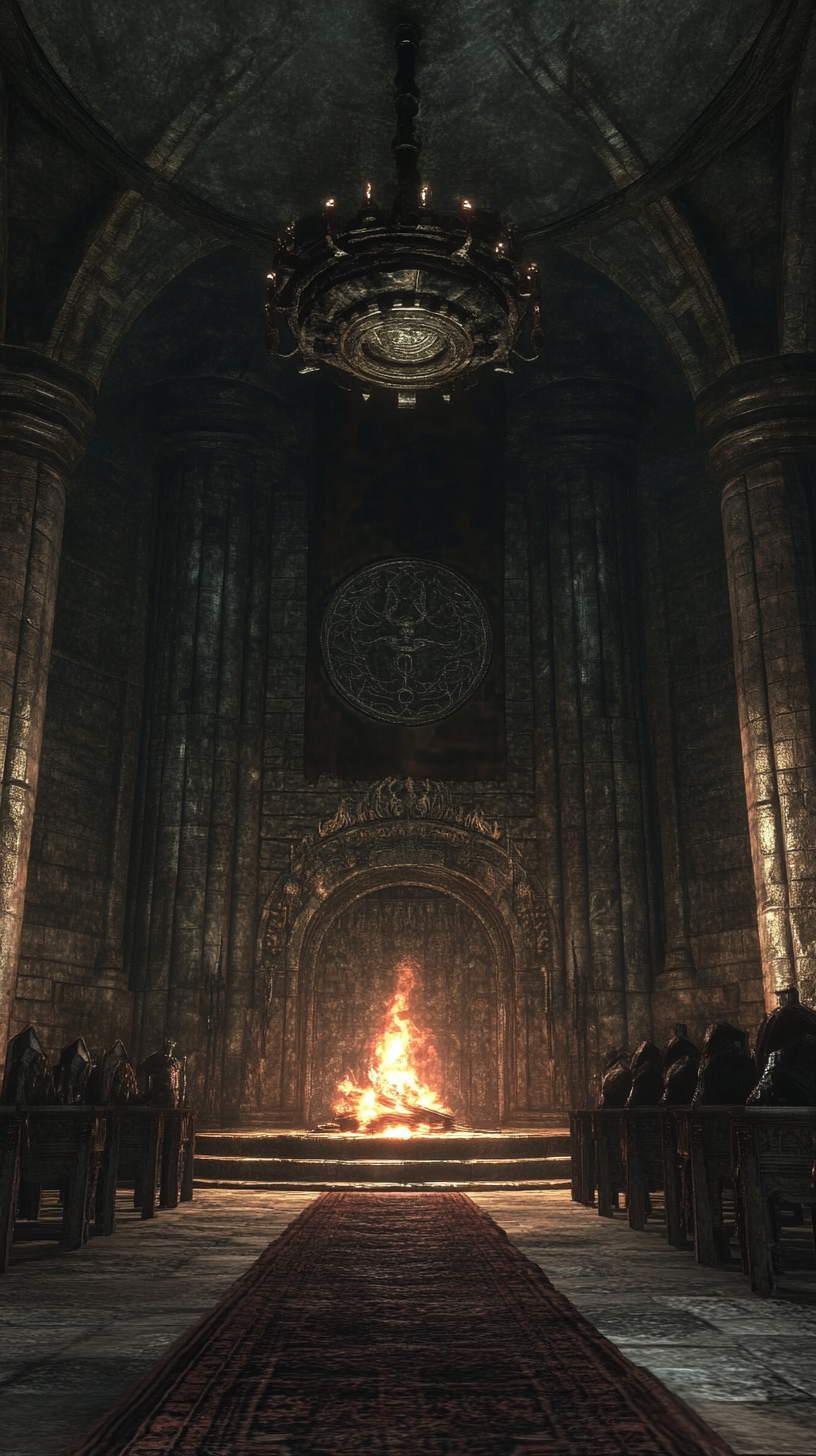 Когда входил в зал заседаний, воздух был густой от напряжения, а запах горящей древесины и металла висел в воздухе. Толстые каменные стены, словно глотки вулкана, излучали тепло, а огонь в огромном очаге по центру танцевал как живое существо, бросая длинные тени на мрачные лица присутствующих. Король Ворнак сидел на своём троне — грозный и внушительный. Его глаза, как два раскалённых угля, были устремлены на троих королей других королевств, сидящих напротив. Каждый из них был закован в броню, отражающую тяжелые тени зала.