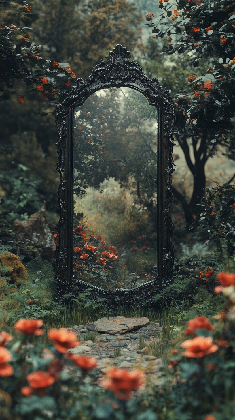 Сады были прекрасны, как всегда. Цветы всех оттенков распускались, наполняя воздух сладкими ароматами. Шла по каменной дорожке, пока не попала на поляну, где часто гуляла в одиночестве. Но сегодня что-то изменилось. Среди травы и цветов, на фоне спокойной зелени, я заметила нечто странное. Там, прямо в центре поляны, лежало зеркало.