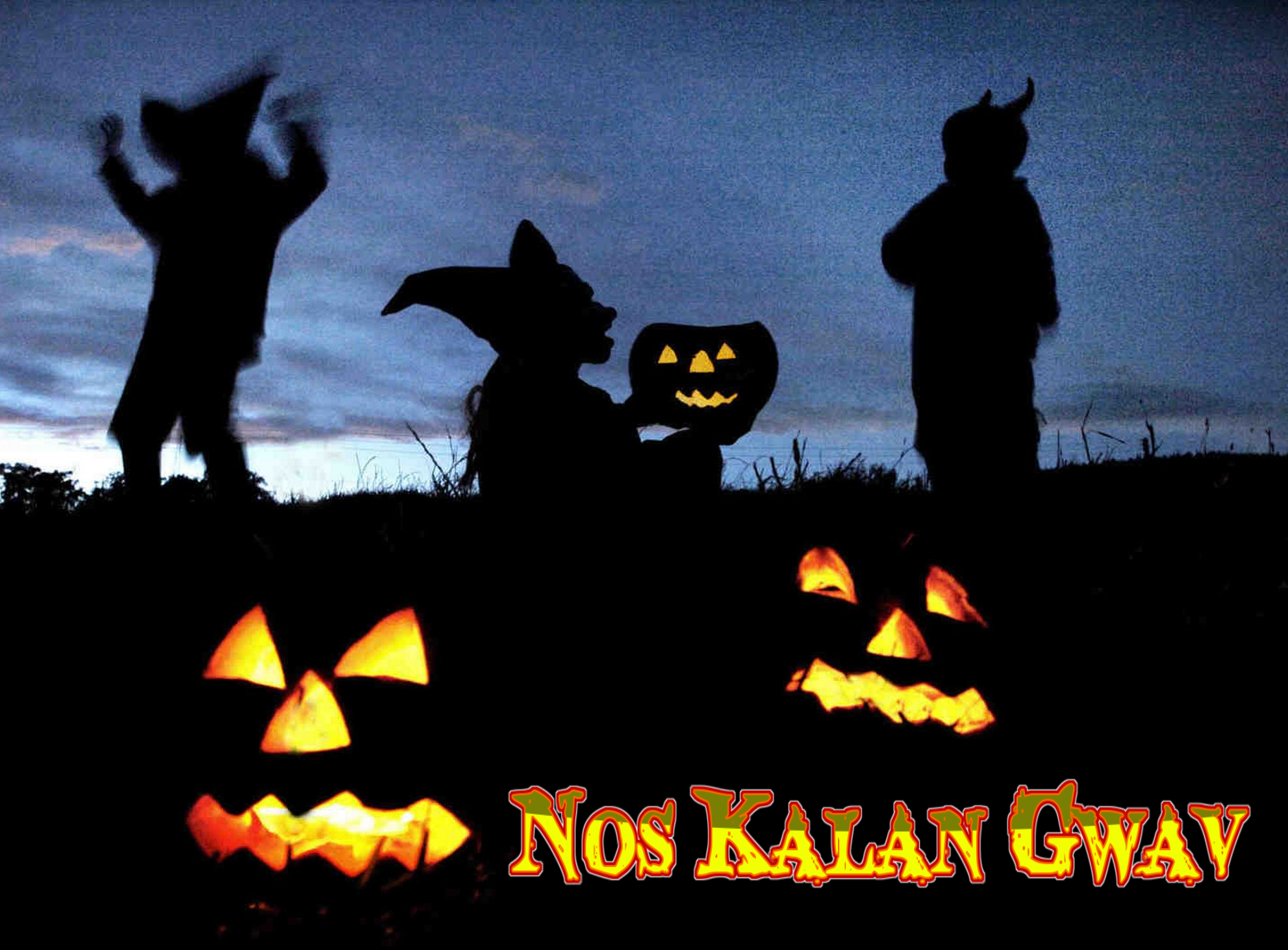 Yma Calan Gwaf ow tos nes, pan fleghes doth awra omguntell adro an tan whyflyn, dhe glewes an whethlow aga thus coth. - Приближается Самайн, когда благоразумные дети собираются вокруг полыхающего огня, чтобы послушать рассказы старших.