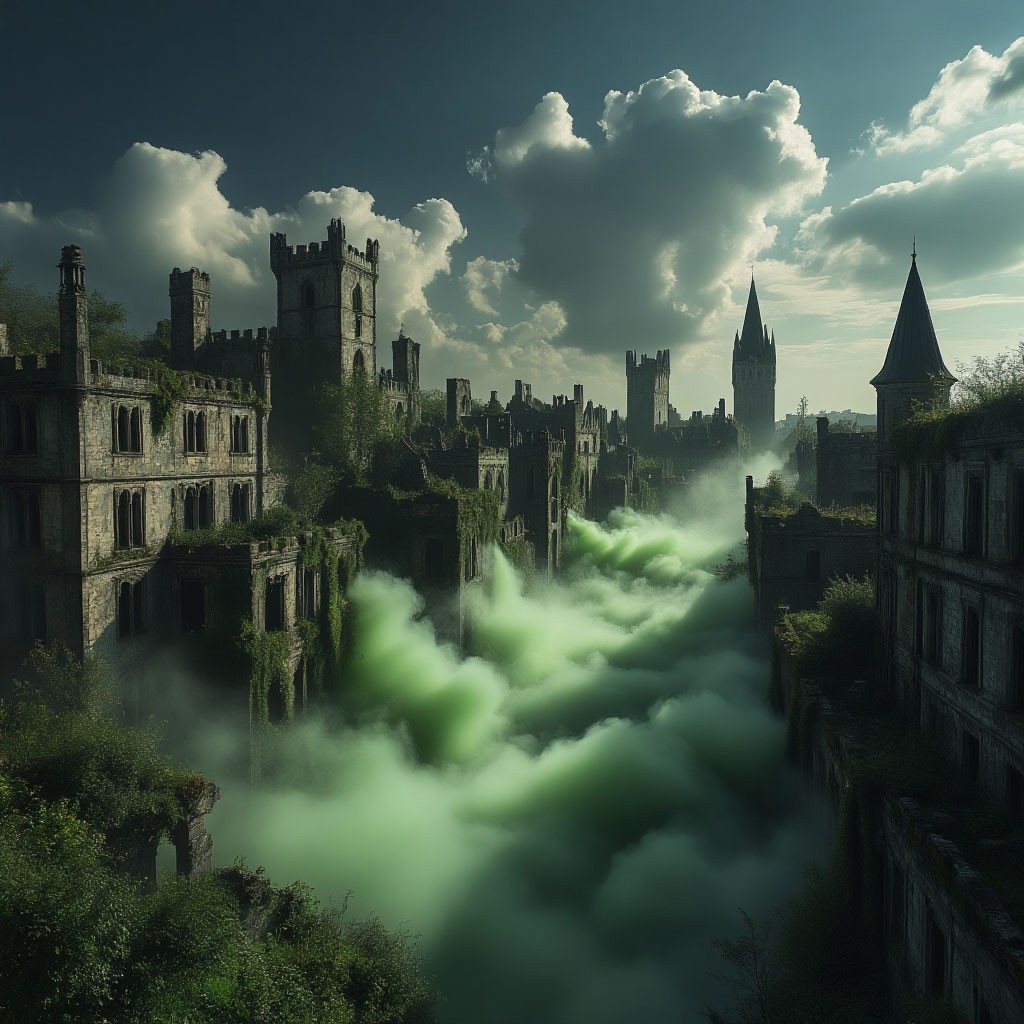Несколько столетий назад, демоны вели работы в горах, нашли большое месторождение железной руды. И с жадностью харворов, мелких зверьков, тащащих в рот всё, что смогут запихнуть, начали добычу. Рыли грубо и не заботились о безопасности, в какой-то момент подпорки не выдержали и шахты рухнули. Из недр земли стал подниматься зелёный туман. Он отравлял всё чего касался, не сразу, медленно постепенно, неотвратимо. Шахты засыпали, пытались запечатать магией, бесполезно. Эта дрянь всё равно вылезает наружу. Сейчас почти восемьдесят процентов планеты поглощено этим туманом. Всё население сгруппировалось в королевстве Ихортерон, оно обнесёно барьером, из мощных воздушных потоков, которые пока справляются с тем, чтобы не пропустить туман внутрь. Но с каждым новым поколением демонов, рожденных с даром управлять стихией воздуха, всё меньше и меньше. Скоро поддерживать барьер станет некому, и тогда зелёная мгла, поглотит последний живой кусок нашей земли.