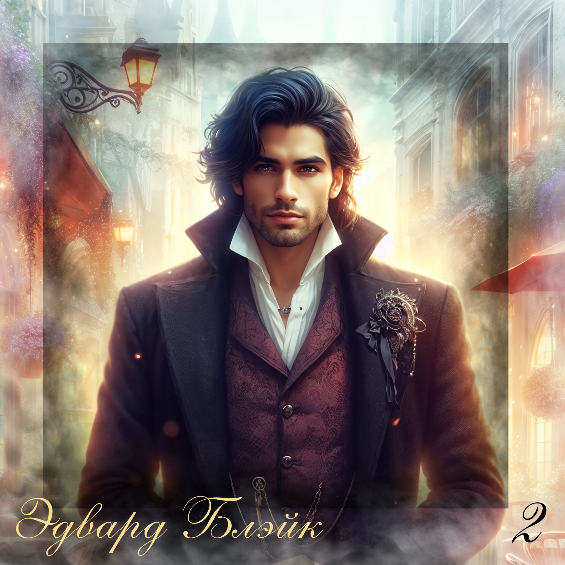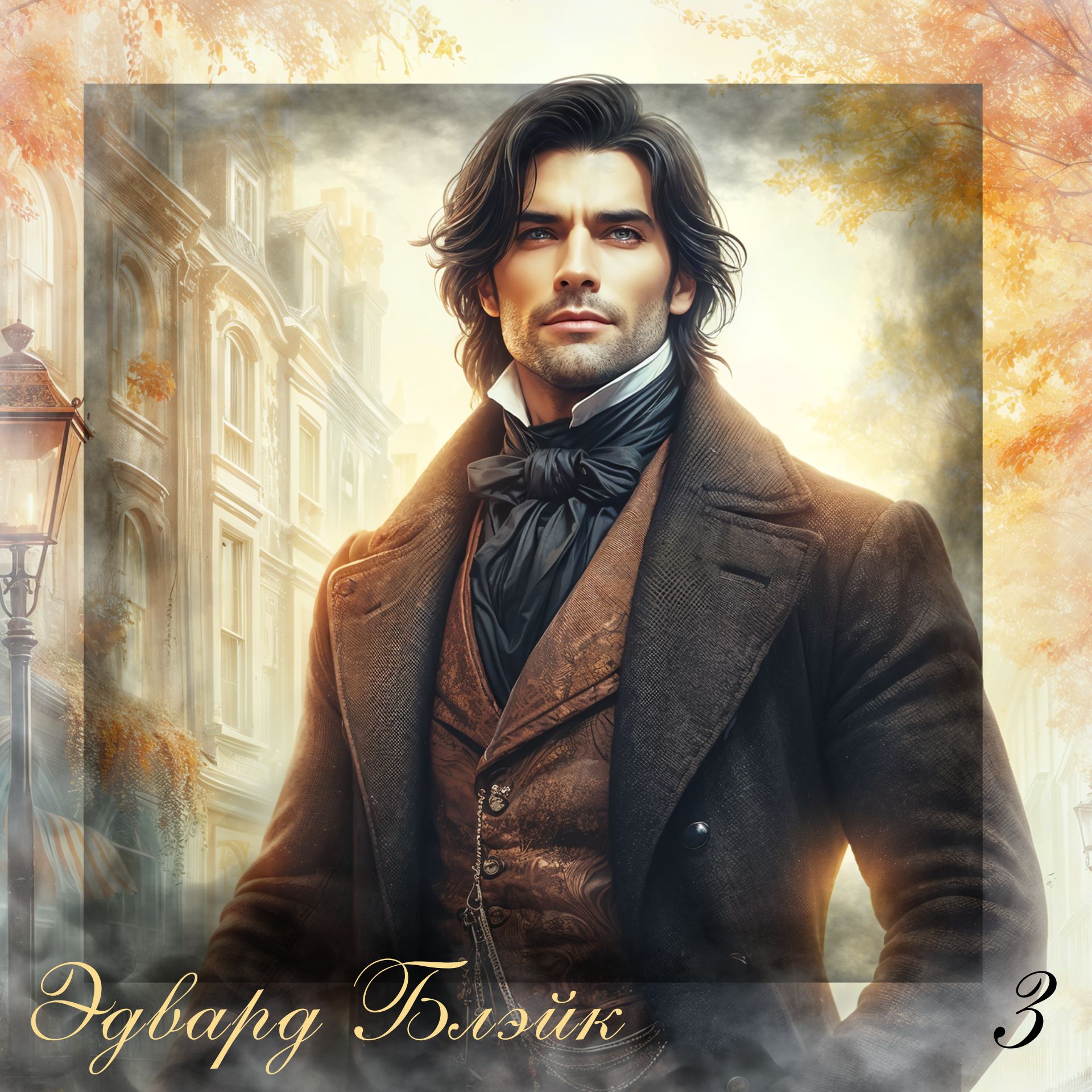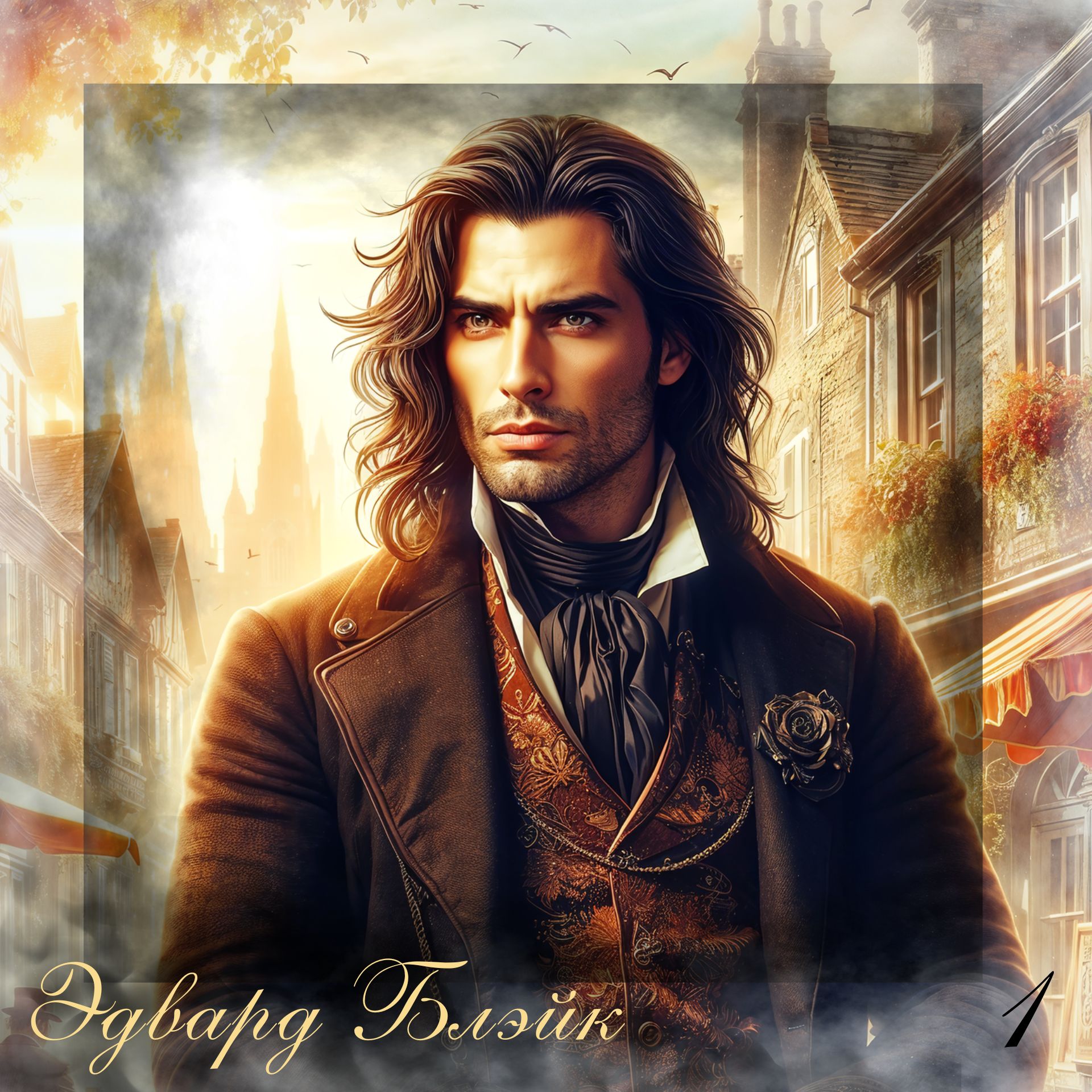 Одет мужчина был в роскошный чёрный камзол с широкими лацканами поверх жилета цвета горького шоколада и светлой рубашки, а также в узкие брюки и высокие чёрные сапоги.