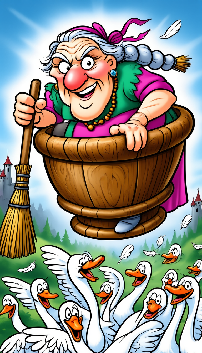 Так ИИ видит сцену с бабой Ягой и гусями-лебедями)))