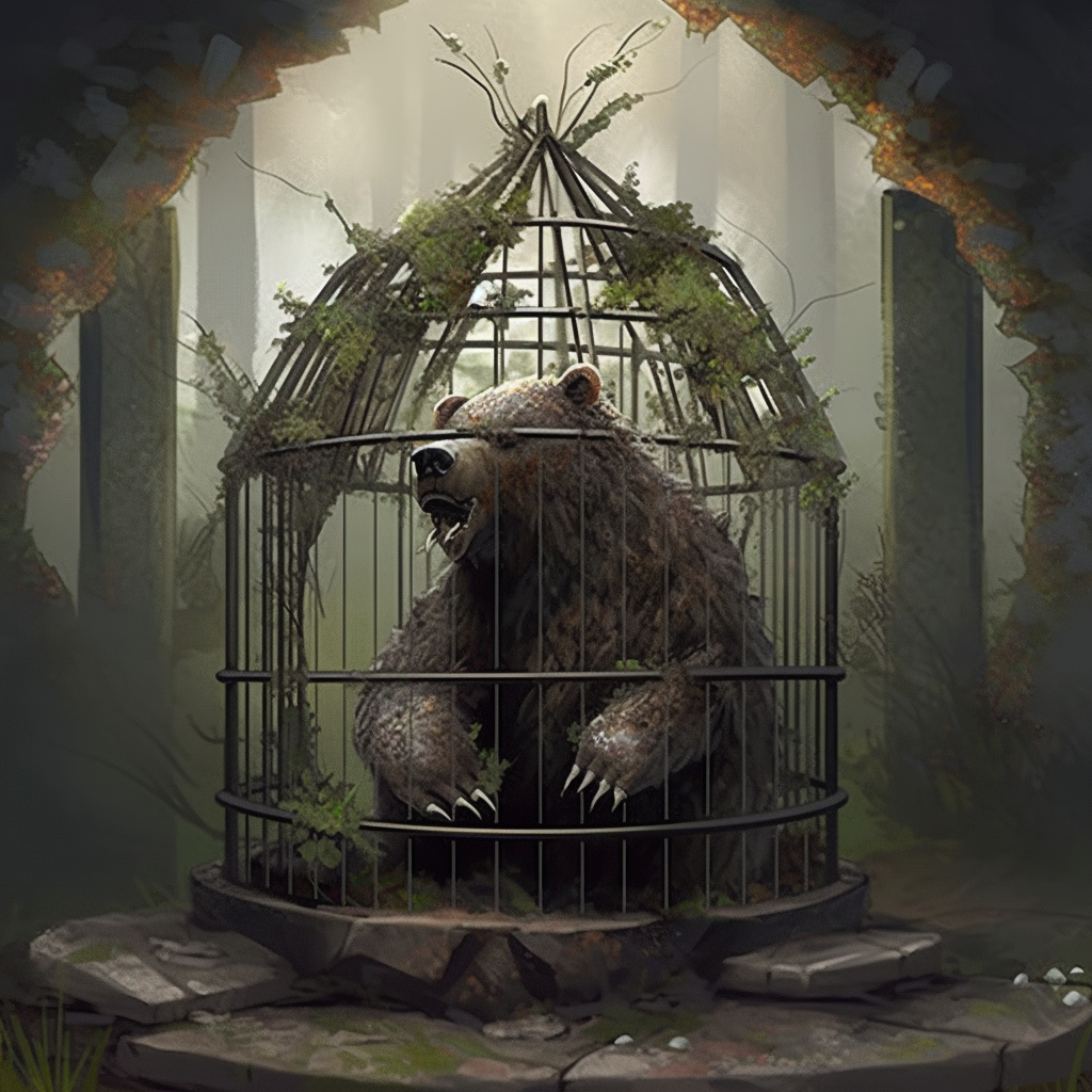 Попробовала сгененировать серокаменного медведя в клетке :)