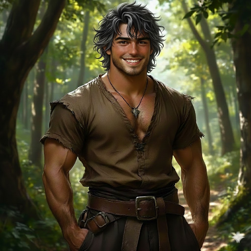 Всегда за проделками юношей и девушек, из леса наблюдал высокий молодой мужчина, с вьющимися, до плеч, густыми черными волосами, пронзительным взглядом изумрудных глаз и легкой улыбкой на лице. В такие моменты, он смотрел на них, как добрый, снисходительный отец, который прощает баловство своим непутевым детям.