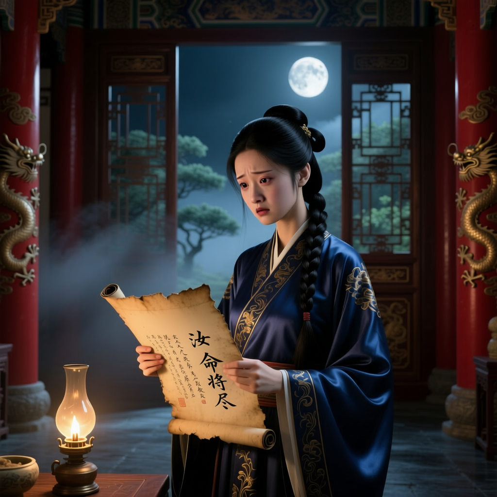 В комнате повисла мертвая, гробовая тишина, настолько густая, что в ней утонул бы даже шелест шёлковых одеяний. Пламя свечи в канделябре замерло, не смея трепетать. Даже евнухи, эти виртуозы бесшумного присутствия, превратились в каменные стелы, в которых не бьётся жизнь. Хитрая служанка с лицом лисёнка приподняла голову, и в её узких, блестящих глазах читался уже не просто страх, а неподдельный, жгучий интерес и холодная расчетливость. Она впивалась в госпожу взглядом, словно старалась прочесть скрытый текст между строк её бледности.