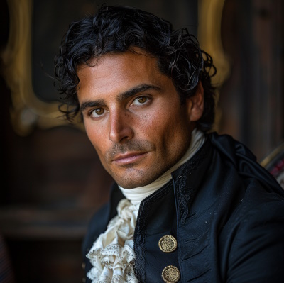 Высокий, статный, с военной выправкой... Густые чёрные волосы до плеч, убранные в хвост. Выразительные глаза с проникновенным взглядом. По этому кавалеру многие вздыхали и вздыхают, а он... всего себя посвятил лишь одной: той, кто, наконец-то, после долгого времени препятствий, стала его супругой*. Ей и только ей он дарит всё и всего себя, пел и сейчас сел петь...