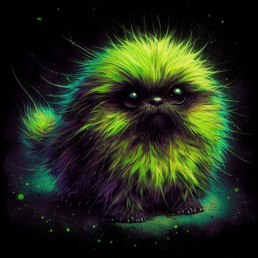 Хруша в ответ довольно рычит, не прекращая жевать. Его черно-салатовая шерсть колышется, как трава на ветру.
