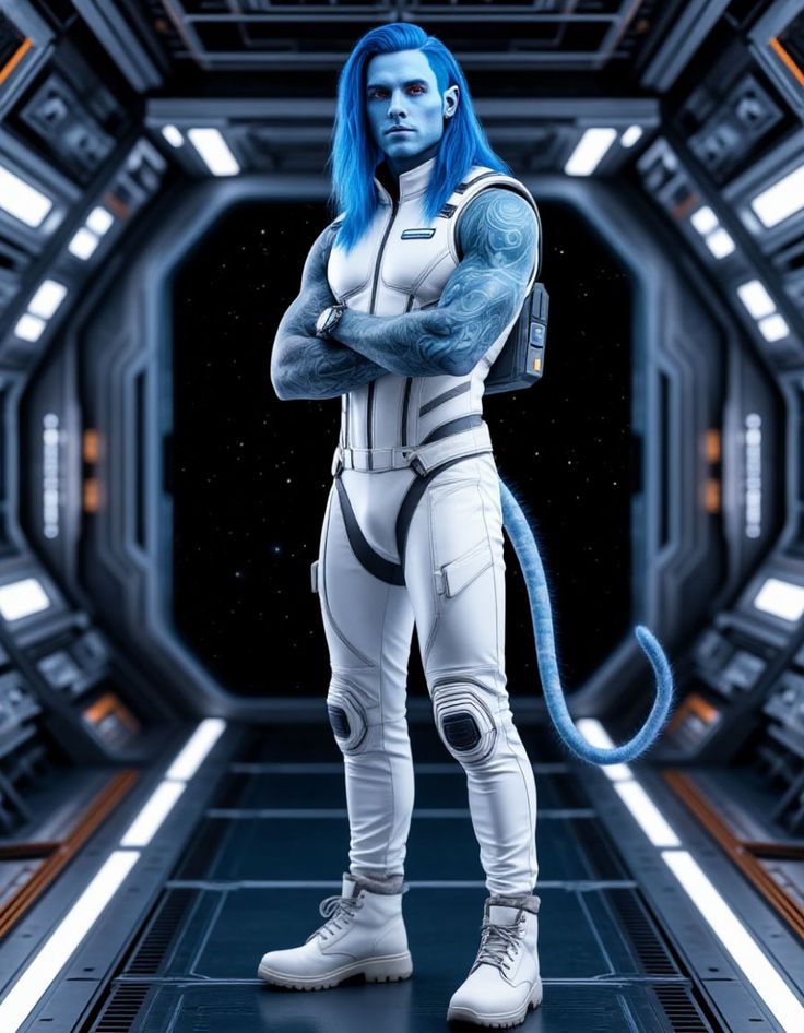 В столовой, среди других рас и рабочих, я заметила парня с голубой кожей и жёлтыми зрачками, одетого в громоздкий скафандр. Его движения были неуклюжими, но в его глазах читалась решимость. Это был наш механик, Эл. Он был водным существом из расы акватория, где обитают одни рыбы и русалы. Его мир — это вода, и на суше он чувствовал себя не в своей тарелке.