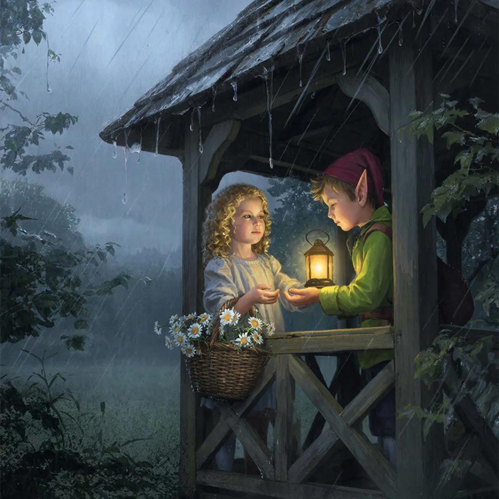 В один солнечный день Елена решила собрать букет из васильков и ромашек, любимых цветов мамы. Она аккуратно складывала сорванные цветы в свою маленькую корзинку. Как только был положен последний василёк, внезапно подул резкий, порывистый ветер. Закапал моросящий дождь, а тучи полностью скрыли солнце. Девочка стала искать укрытие, чтобы спрятаться от дождя и сохранить букет. Неподалёку она увидела у беседки мальчика, который приветливо махал ей рукой, приглашая внутрь. Елена бросилась к беседке, где её уже ждал незнакомец.