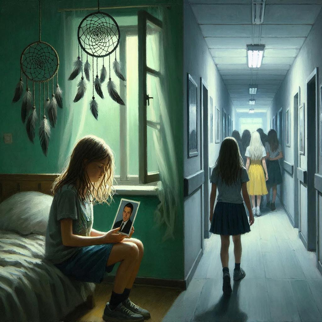 — Вещей? — девушка фыркнула, будто услышала нелепую шутку. — Милая, здесь всё работает не по твоим деревенским правилам. Есть неписаный кодекс. Моё место - у окна, в первом ряду. Все это знают. — Она обвела взглядом класс, и несколько человек у задних парт неуверенно кивнули или отвели глаза.