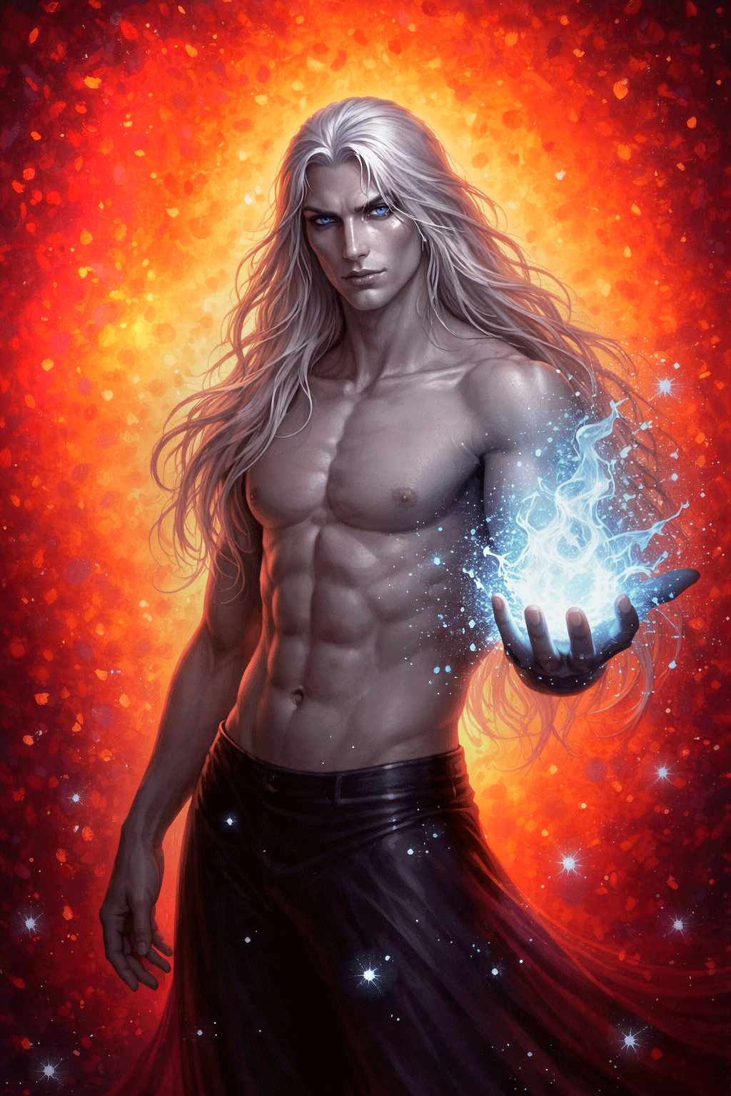 Серая кожа дроу, благородная даже под слоем дорожной грязи и синяков. Белые волосы, спутанные и грязные, но всё ещё длинные, ниспадающие на широкие плечи – те самые волосы, в которые я когда-то зарывалась пальцами, задыхаясь от наслаждения. И глаза – голубые, как зимнее небо, усталые до смерти, но всё ещё живые, всё ещё горящие той внутренней силой, которая когда-то сводила меня с ума.