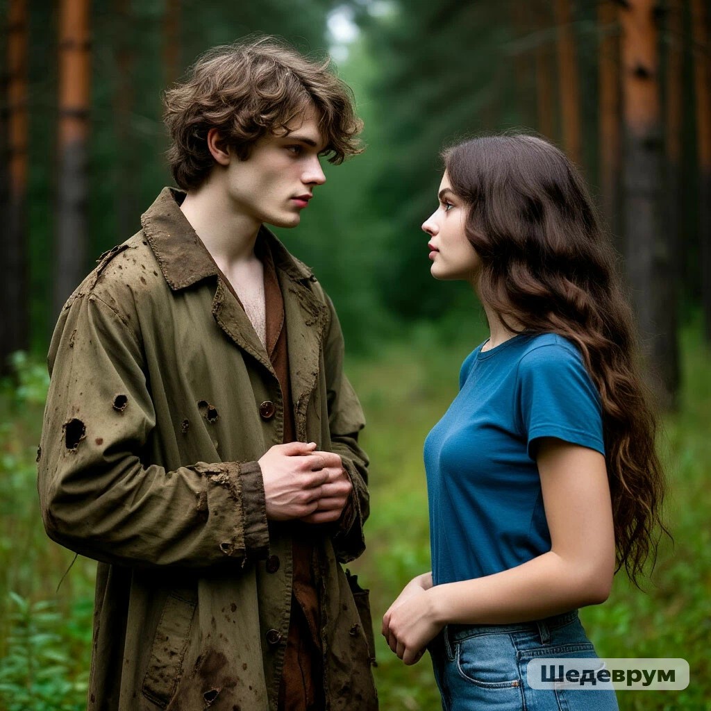 "Что Вы так кричите? Вы же мёртвого разбудите!"- с укором в голосе, сказал кто-то над головой Саши. Она резко подняла голову и вздрогнула: перед ней стоял незнакомый мужчина средних лет со светлыми седоватыми спутанными волосами и светло- серыми глазами, бледный и в какой-то ветхой одежде. Они несколько мгновений смотрели друг на друга, потом его взгляд смягчился, он присел на корточки рядом с ней и участливо спросил:"Что Вы здесь делаете?" Саша, отмерла и неуверенно ответила:"Дождь пережидаю. Наверное, Вы тоже?" Мужчина усмехнулся:"Наверное. Как Вы здесь оказались, в этом лесу? Сюда не всякий заходит. А тем более барышни вроде Вас."