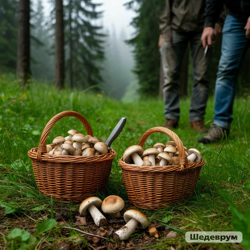 "Лёха, держи!"- протянул другу корзину полную грибов его товарищ.