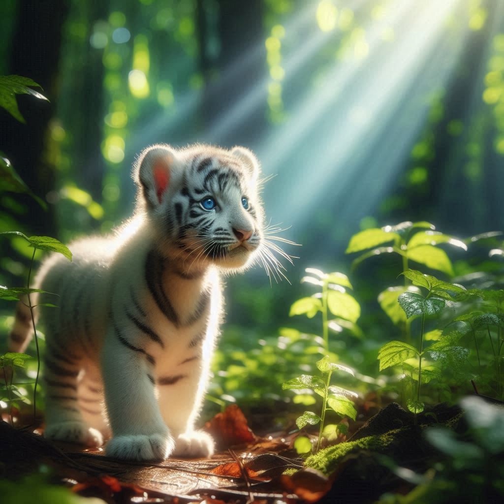 Малыш Лучик — само очарование! Белоснежный котенок, напоминающий по виду белого тигренка. Умеет урчать, кусаться и царапаться. Но все безобидно, сообразительный!