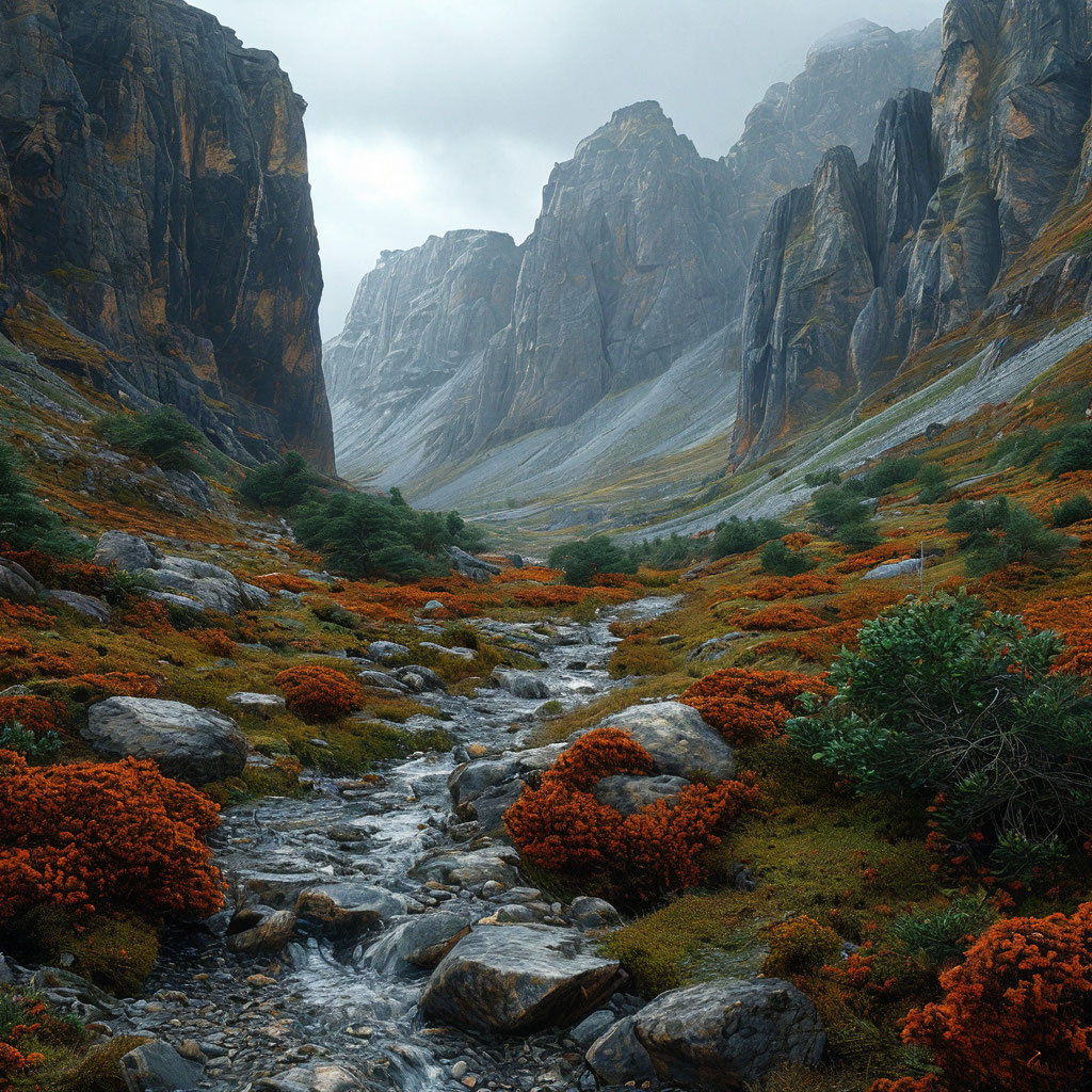 Да, ландшафт не отличался красотой: кругом были серые камни, поросшие рыжеватым мхом, бурая трава и тяжёлое небо стального цвета. Солнце, висевшее у самого горизонта, словно так и не могло определиться: осветить эту печальную картину или всё же уже спрятаться подальше.