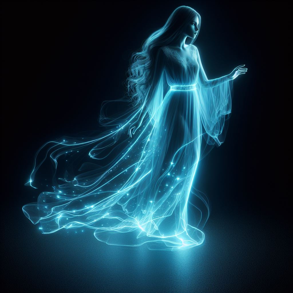 Подняла взгляд и наткнулась на полупрозрачную голубую фигуру девушки в синем длинном старомодном платье.