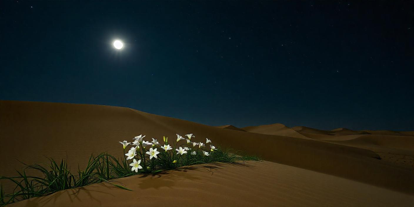 Опустился на землю и остолбенел. Зажмурился, потрусил головой, снова посмотрел на песок, не поверив своим глазам. Поднёс ближе морду, вдохнул аромат лилий с такой силой, что лепестки распустившихся цветов потянулись ко мне, словно младенец к матери.