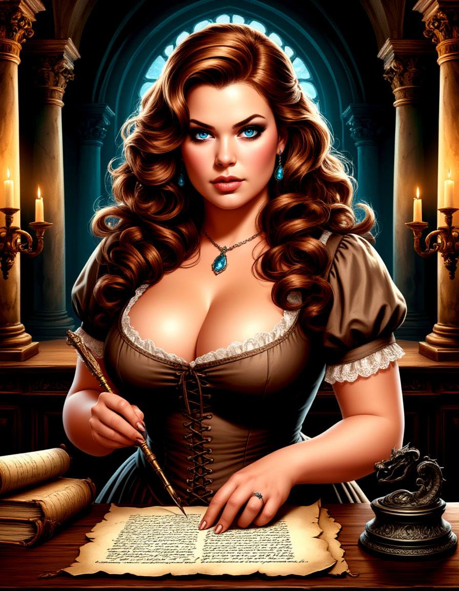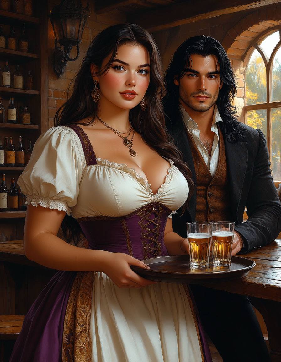 Герольд, кажется, впервые рассмотрел меня по-настоящему. Мои пухлые, но жесткие ладони, привыкшие скорее к рукояти меча, чем к пяльцам, сжимали запотевшую кружку так крепко, будто это был якорь в бушующем море столичной жизни. Пышный бюст, едва прикрытый потрепанным плащом с выцветшей баронной вышивкой, поднимался и опускался от волнения. Круглое лицо с ямочками, обрамленное растрепанными ореховыми прядями — ну прямо хрестоматийная картина «невинная девица в беде», если бы не наливающийся синяк под глазом и не разбитая губа, придававшая мне вид скорее забияки из таверны, чем благородной дамы.
