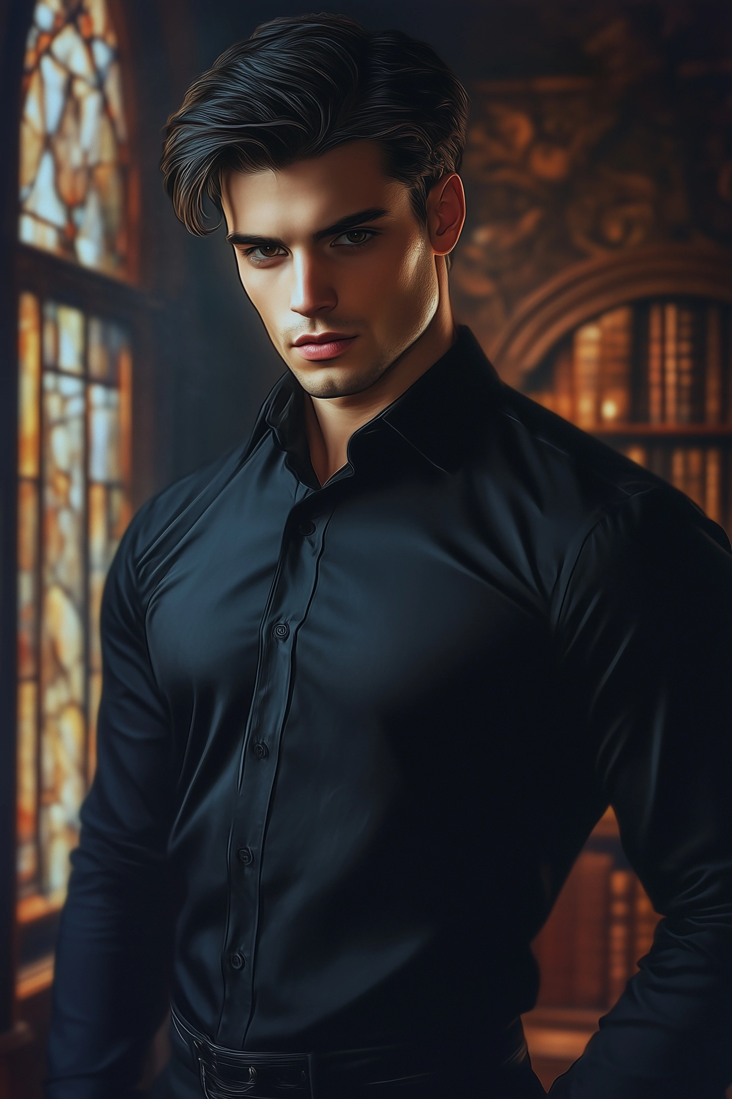 Она расстёгнута на две верхние пуговицы, обнажая красивые мужские ключицы. Взгляд скользит ниже, слегка оценивая масштаб моей личной катастрофы: демон слишком... Слишком красив, мускулист, совершенен. Рубашка в обтяг выгодно подчеркивает широкие плечи и накачанные руки. Рельефы торса не особо-то и скрываются за черной плотной тканью. Когда взгляд останавливается на ремне, я тут же ощущаю дикий стыд и поднимаю глаза на уровень его лица.