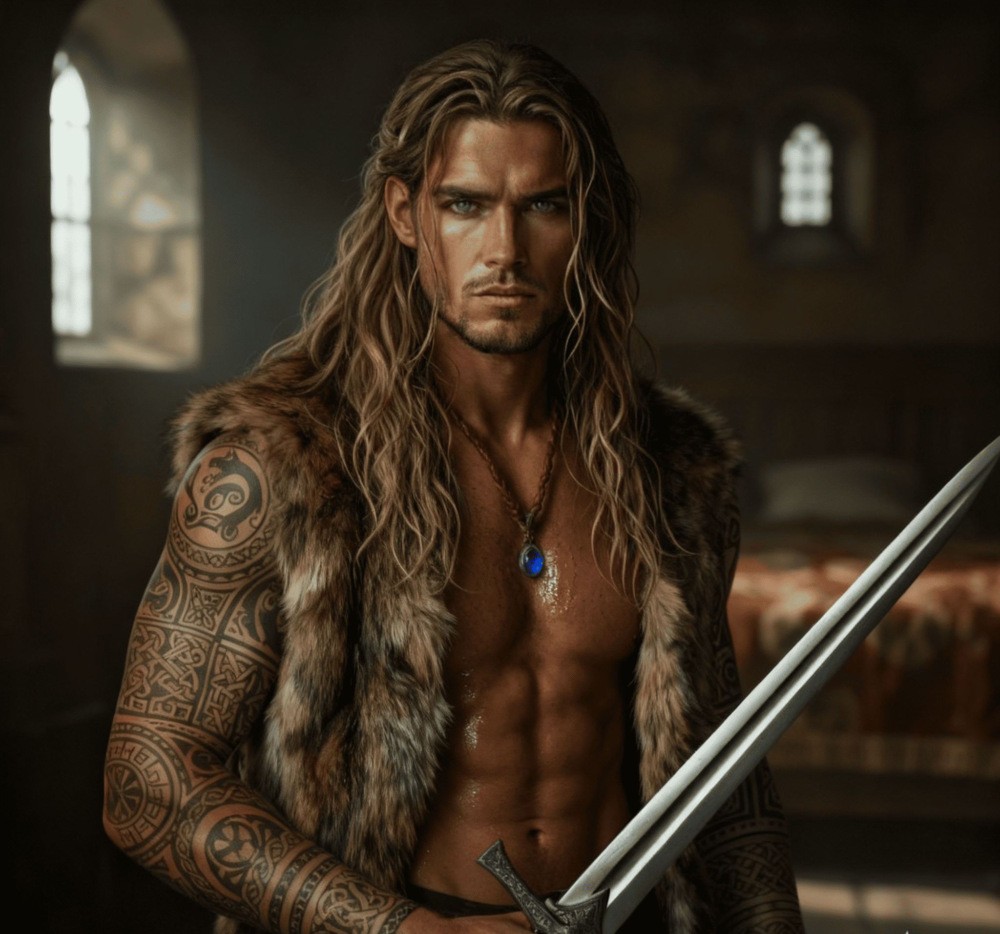 Очаг догорел, и в покоях стоял сумрак. Не сразу поняла, кто спал со мной рядом. Присмотрелась к нему и прикрыла рот рукой, чтобы не вскрикнуть. На глаза навернулись слезы. Я находилась в постели с обнаженным темноволосым мужчиной. На груди у него блестел светящийся амулет с голубым кристаллом.