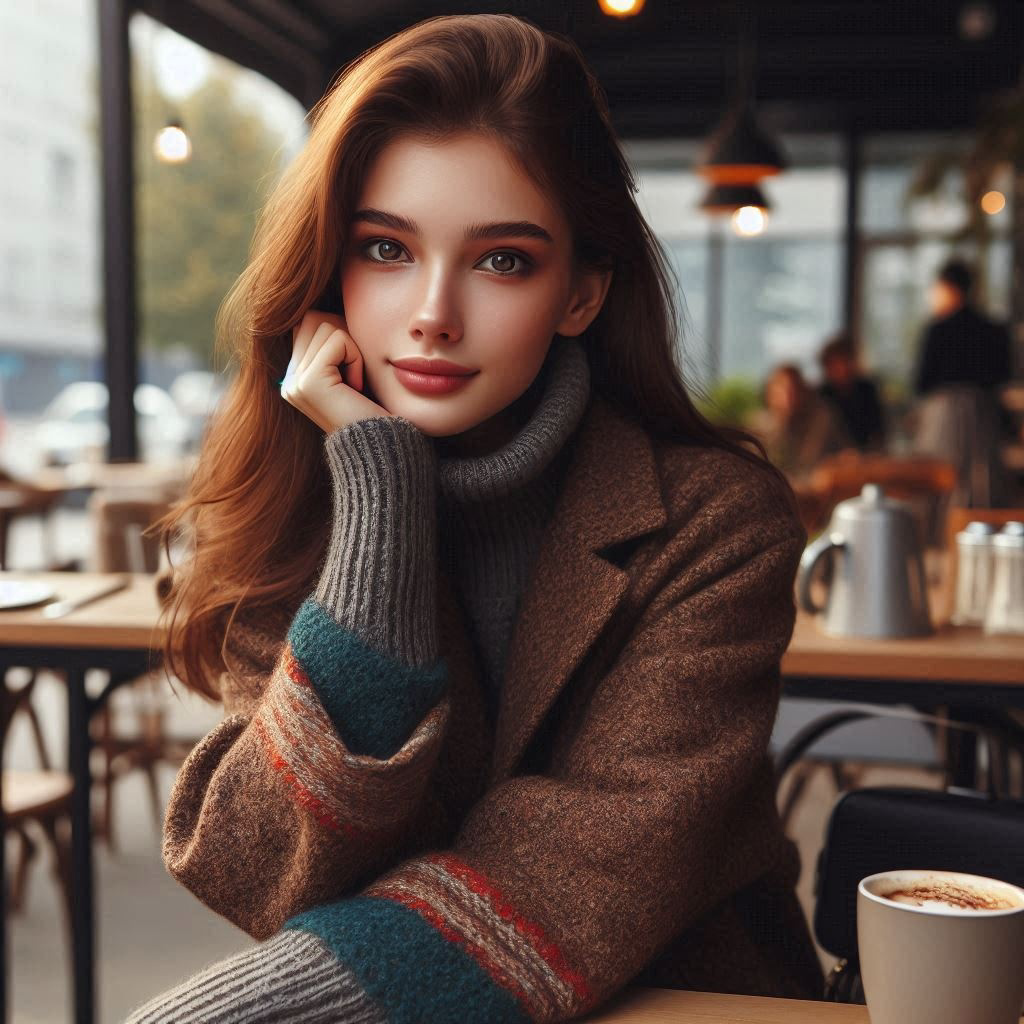 Официантка, едва ли старше меня, явно с праздничным настроением. Её тонкая косичка качается в такт шагам, и на её лице сияет такая искренняя улыбка, что я чувствую себя ещё унылее.