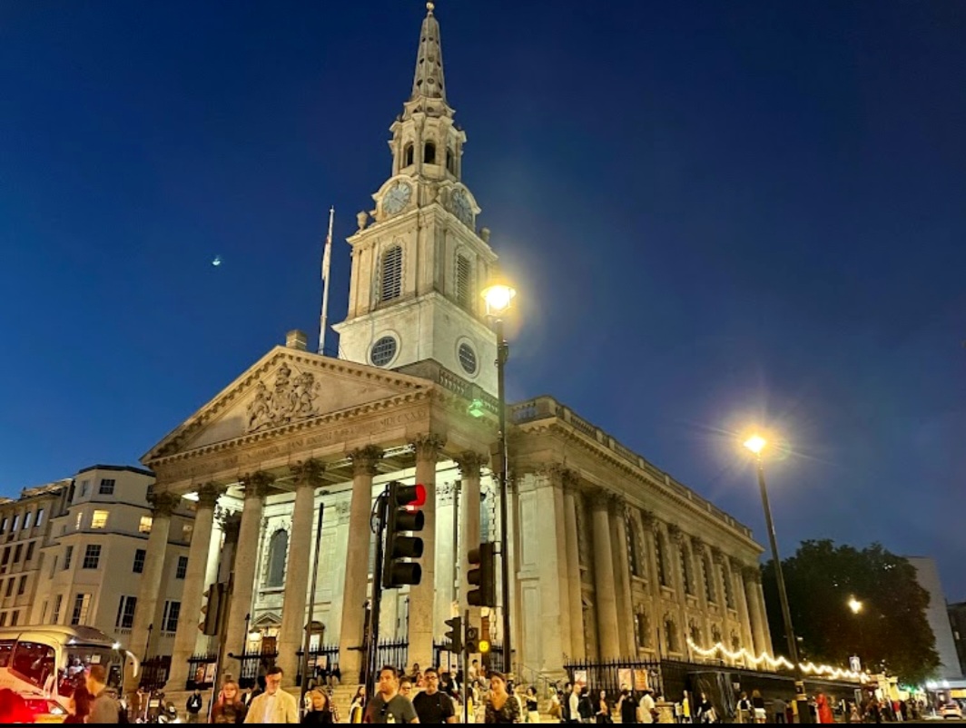 Церковь St Martin-in-the-Fields на Трафальгарской площади и бистро в склепе под ней.