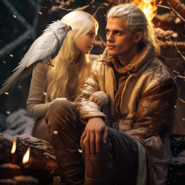 - Я очень скучала, - шепчет девушка с белоснежными волосами, слегка касаясь губами его губ.