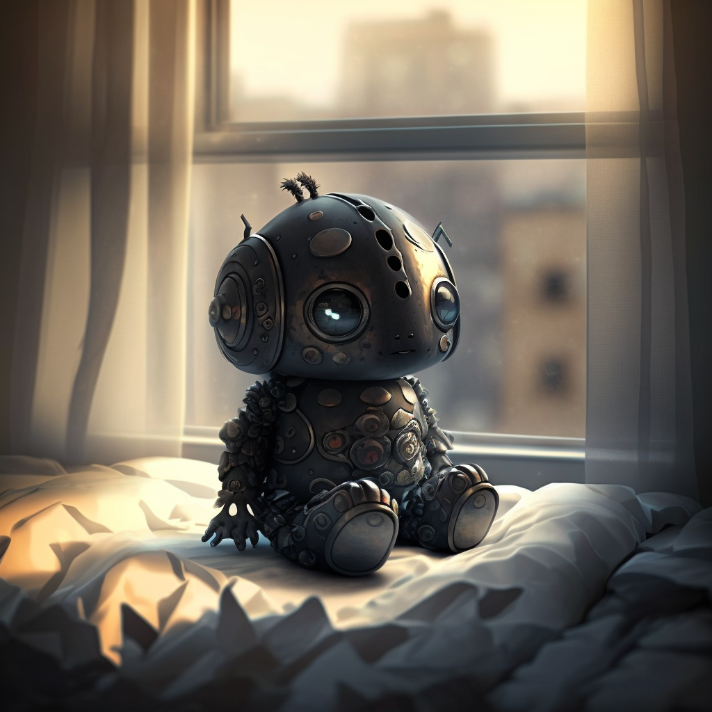 На кровати сидела растерянная Арина, а рядом с ней сидел маленький робот. Он был на столько маленький, что запросто поместился бы на ладони.