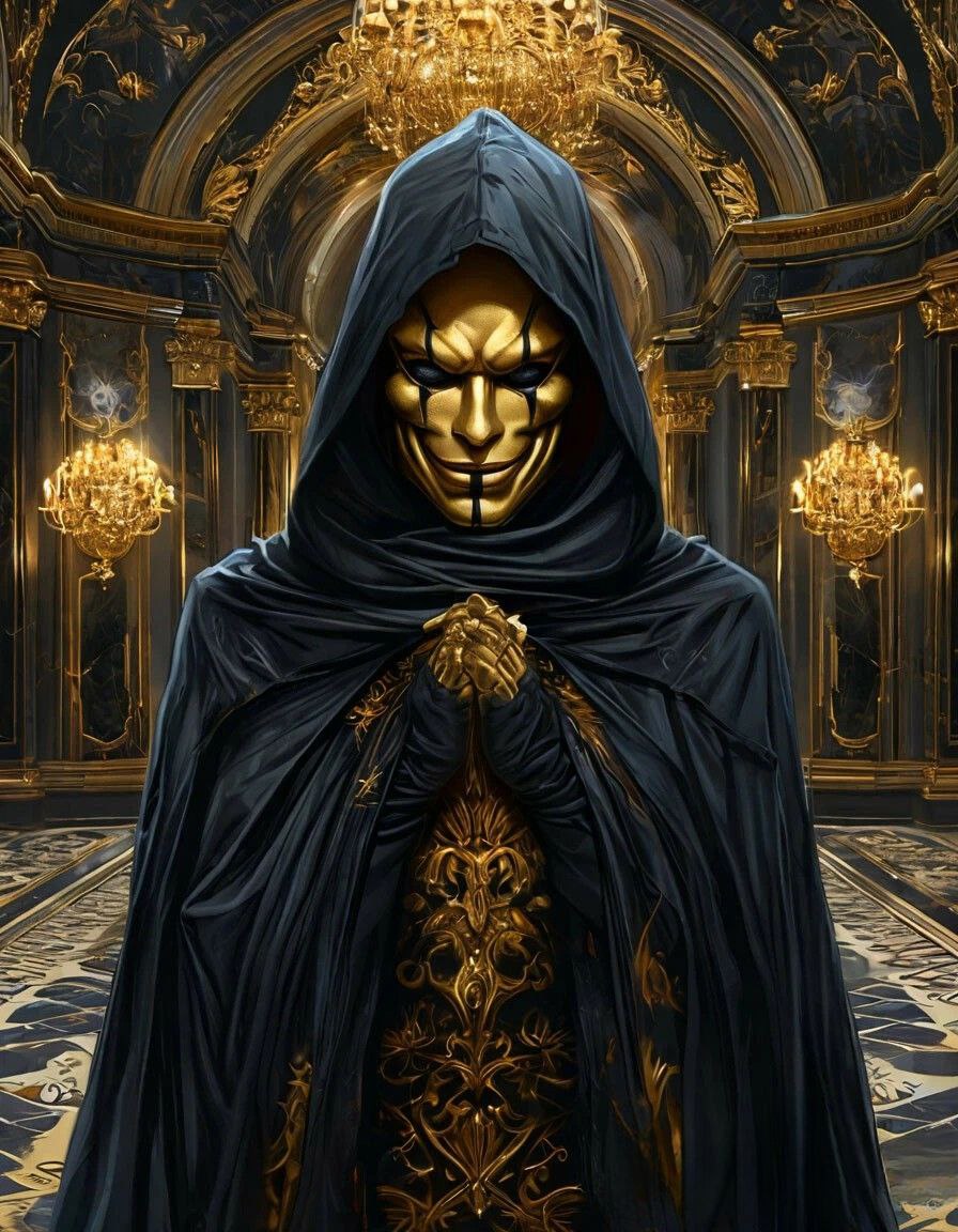 Аластор, стоявший перед мраморным троном в круглом зале Арканума, ощущал на себе ледяное дыхание двадцати одного пустующего трона, теряющихся в полумраке. Мглу рассеивало лишь призрачное голубоватое свечение факелов. Воздух был пропитан тяжелым ароматом ладана и чего-то еще, неуловимо горького, словно запах древней магии. Перед ним восседала женская фигура, облаченная в черную, как смоль, мантию. Тонкие пальцы в перчатках из темной кожи покоились на холодном камне подлокотников. Лицо скрывала золотая маска Шута — широкая, болезненно-радостная улыбка, резко контрастировавшая с абсолютно черными, обсидиановыми глазами, сверкающими из-под нее. Эти глаза, полные озорного, жестокого блеска, не сулили ничего хорошего. Аластор это знал. Он знал, почему он здесь.