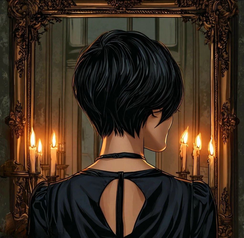 Несколько секунд тянулись, словно бесконечность. Затем, в отражении под ее ладонью, карточка начала таять, как снежинка на раскаленном металле. Черный лак растворялся, исчезая в волнах искаженного отражения. Поверхность зеркала заходила рябью, словно поверхность озера, потревоженная резким броском камня. Открыв глаза, девушка увидела, что реальность вокруг нее изменилась. Комната за ее спиной, кровать с балдахином, тяжелые портьеры на окнах — все исчезло, поглощенное тьмой. Осталось только ее отражение, застывшее в зеркале, как единственная точка света во вселенной.