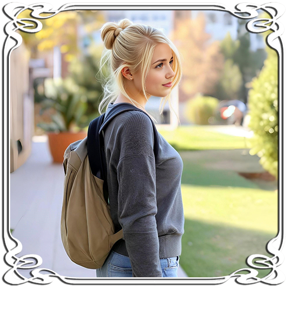 Она разумно полагала, что критерии красоты крайне субъективны и что непременно найдётся тот, кто заметит её именно такой, какая она есть. Девушка не гналась за модой, старалась обходить искусственное и наносное. Исключение сделала для волос: тёмно-русые волосы она всё же обесцветила, полагая, что блондинка в зеркале ей нравится больше, чем серый мышонок. Ну и немного косметики, совсем чуть-чуть.