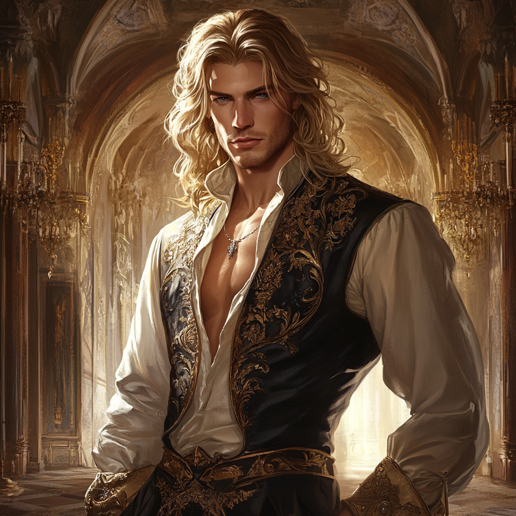 Бледно-голубой камзол обтягивал широкие плечи и мощные руки.
