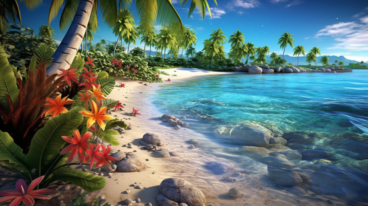 До пляжа мы добежали, ну, очень быстро, чуть ли не перепрыгивая через кусты. Что называется, вижу цель – не вижу препятствий. И уже через каких-то пару минут оказались на огромном, невероятно красивом безлюдном пляже в виде уютной полукруглой гавани с золотым песком, обрамленном с двух сторон тропическим лесом и скалами, которые словно закрывали остров от посторонних глаз и создавали ощущение своего личного маленького моря.