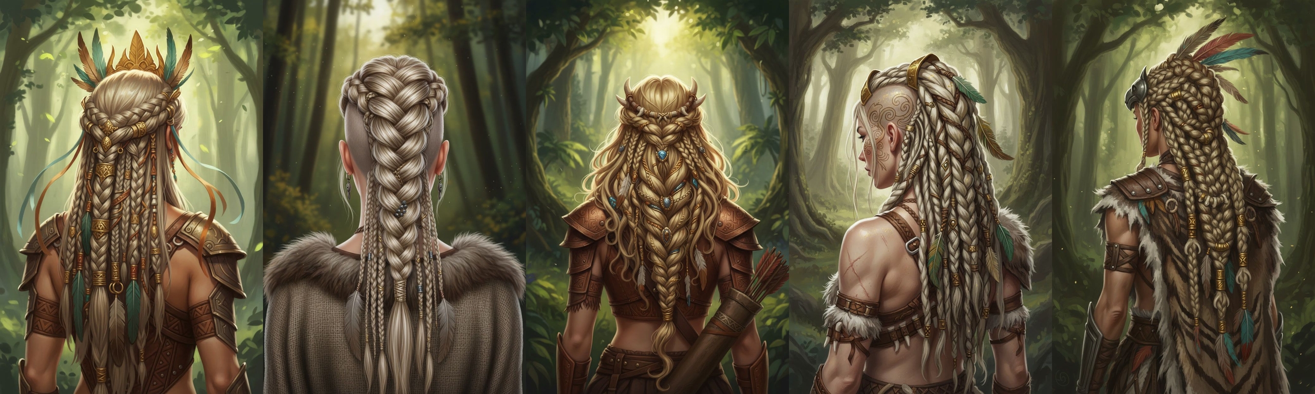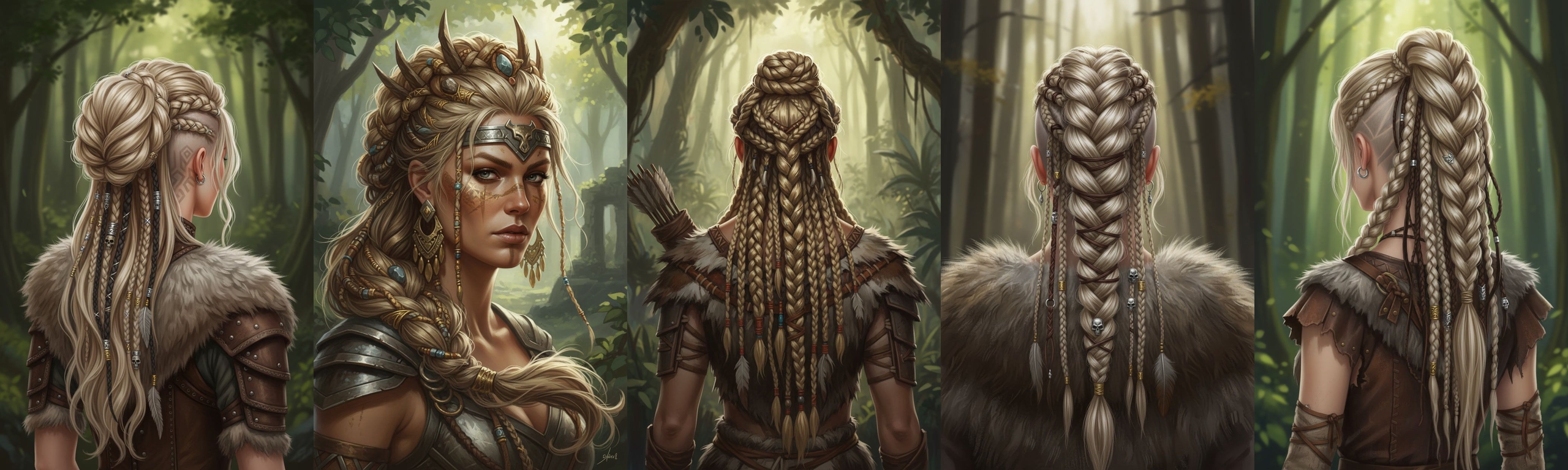 Ларчанки — это девы-воительницы, их прически напоминают утилитарно удобные укладки женщин-викингов: тугие косы, собранные в высокие хвосты и часто выбритые виски. Волосы чаще всего или очень коротко отрезаны, чтобы не мешались на охоте, или, наоборот, очень длинные — до поясницы. Цвет — все оттенки блонда от снежно-белого до рыжеватого.