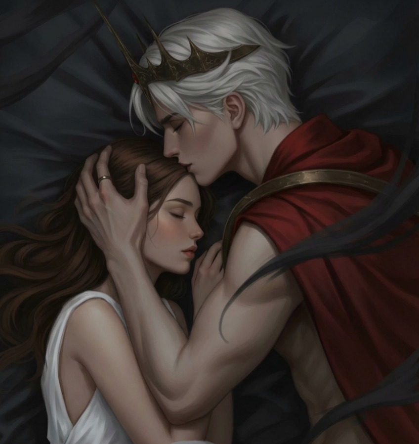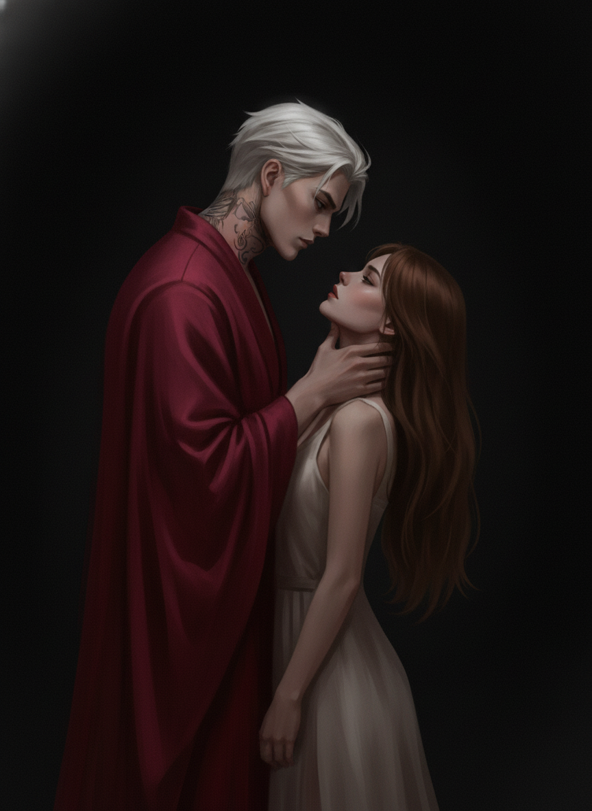 Я склонился над ложем. Мои пальцы едва касались прохладной кожи её запястья, где под поверхностью пульсировала кровь. На её лице не было ни силы, ни того дикого огня, что сводил меня с ума. Лишь уязвимость — и что‑то ещё. Я не мог подобрать этому названия, но оно заставляло что‑то сжиматься в глубине моей собственной, давно окаменевшей сущности.