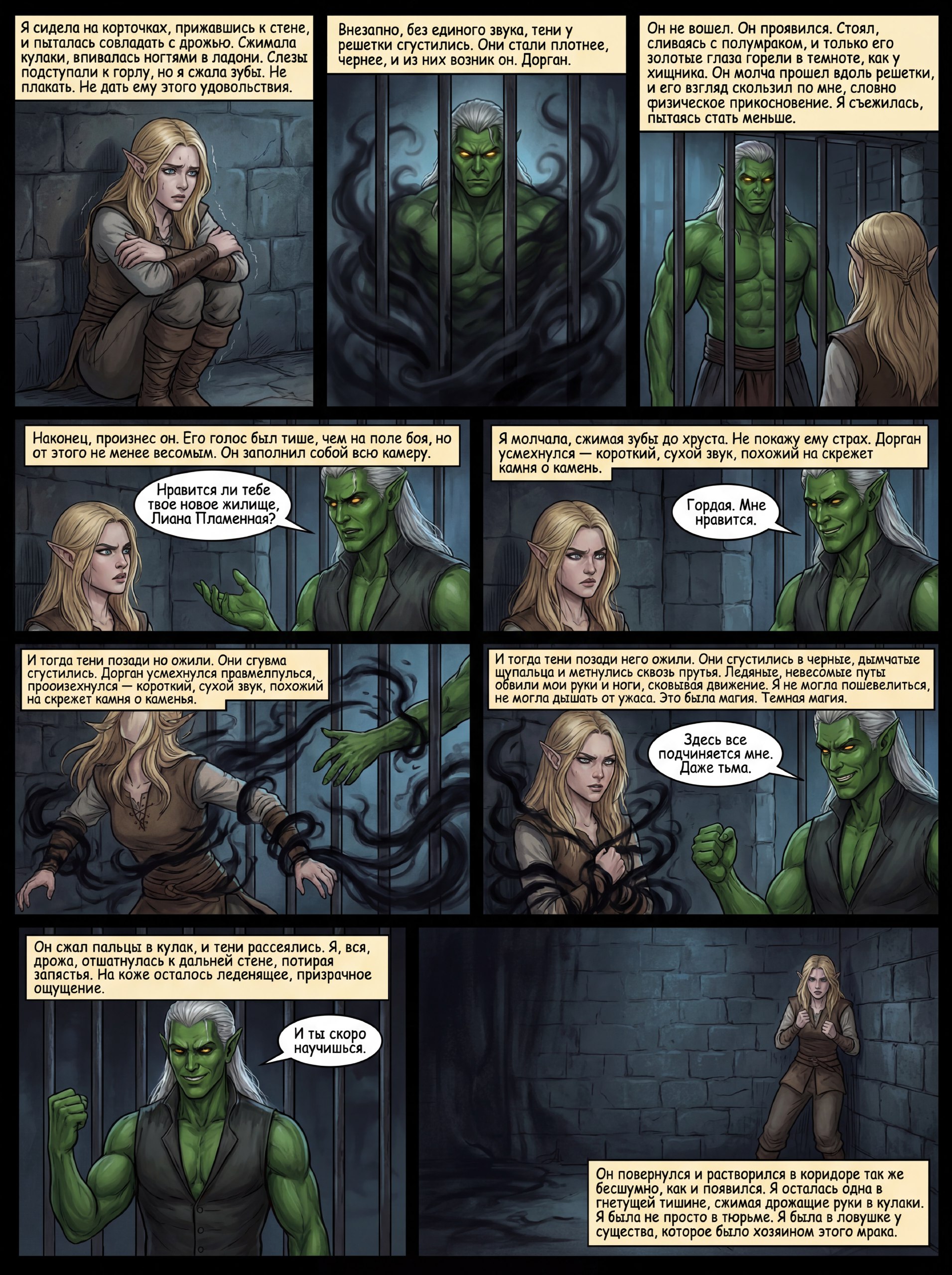 - Нравится ли тебе твое новое жилище, Лиана Пламенная? — наконец, произнес он. Его голос был тише, чем на поле боя, но от этого не менее весомым. Он заполнил собой всю камеру.